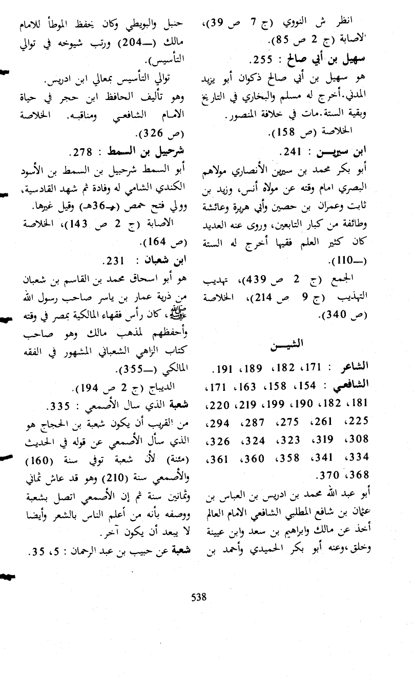 أبو عبد الله محمد بن ادريس بن العباس بن عثمان بن شافع المطلبي الشافعي الإِمام العالم أخذ عن مالك وإبراهيم بن سعد وابن عيينة وخلق، وعنه أبو بكر الحميدي وأحمد بن حنبل والبويطي وكان يحفظ الموطأ للإِمام مالك (- 204) ورتب شيوخه في توالي التأسيس).