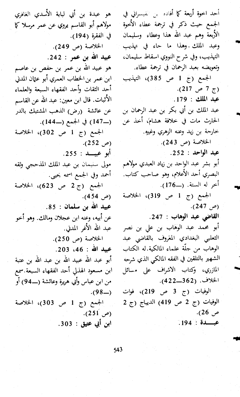 هو عبيد الله بن عمر بن حفص بن عاصم ابن عمر بن الخطاب العمري أبو عثمان المدني أحد الثقات وأحد الفقهاء السبعة والعلماء الأثبات. قال ابن معين: عبد الله عن القاسم عن عائشة (رض) الذهب المشتبك بالدر (- 147) في الجمع (- 144).