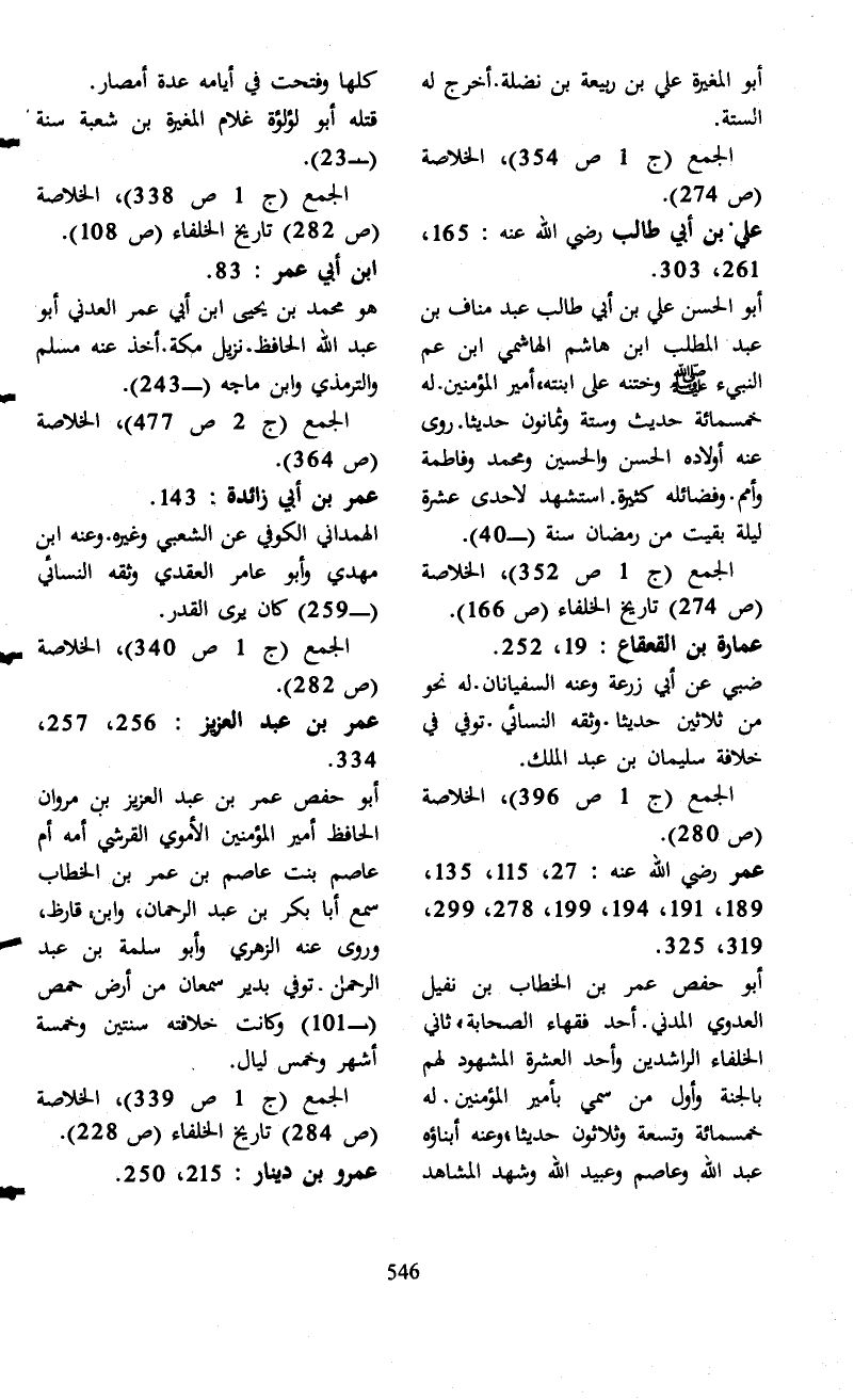 الجمع (ج 1 ص 339)، الخلاصة (ص 284) تاريخ الخلفاء (ص 228).