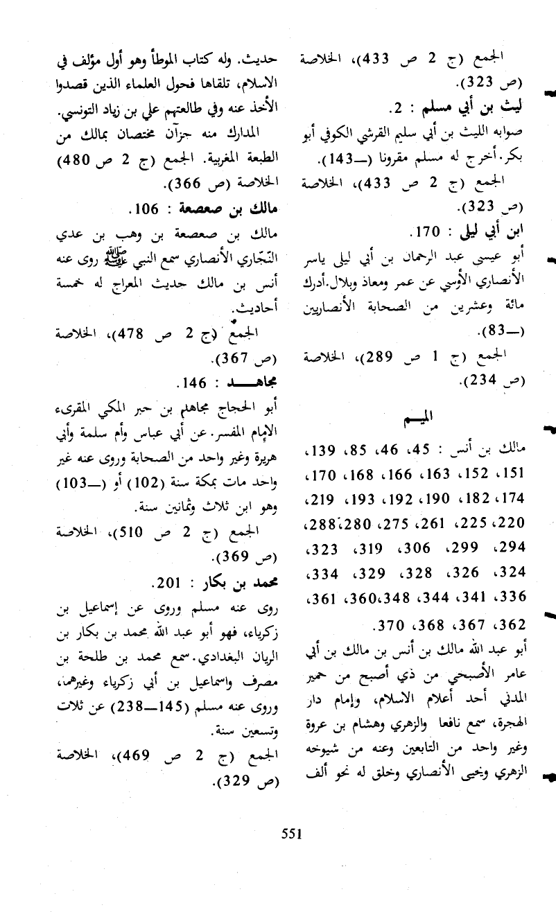 مالك بن أنس: 45، 46، 85، 139، 151، 152، 163، 166، 168، 170، 174، 182، 190، 192، 193، 219، 220، 225، 261، 275، 280، 288، 294، 299، 306، 319، 323، 324، 326، 328، 329، 334، 336، 341، 344، 360،348، 361، 362، 367، 368، 370.