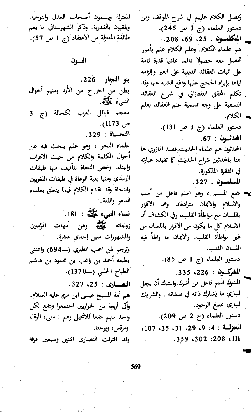 وَفصل الكلام عليهم في شرح المواقف ومن دستور العلماء (ج 3 ص 245).