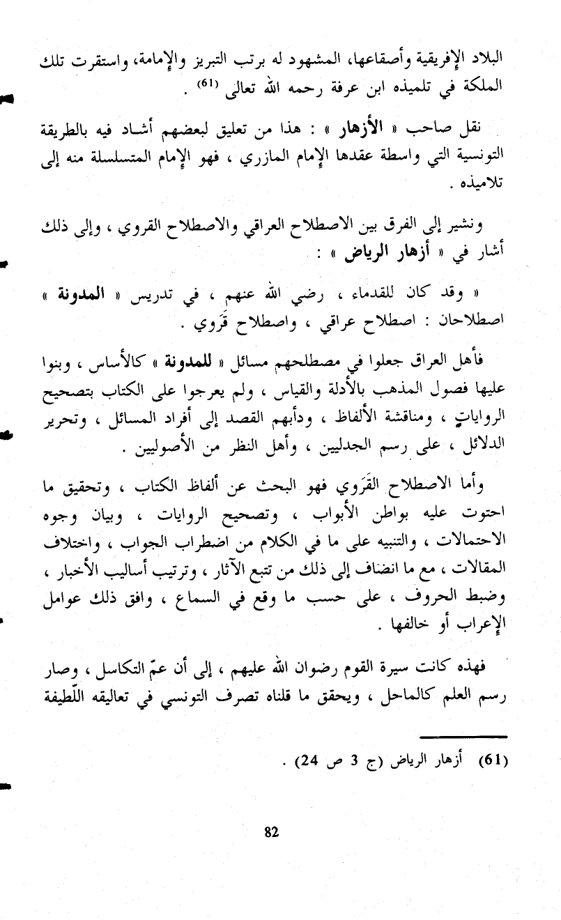 "وقد كان للقدماء، رضي الله عنهم، في تدريس "المدونة" اصطلاحان: اصطلاح عراقي، واصطلاح قَرَوي.