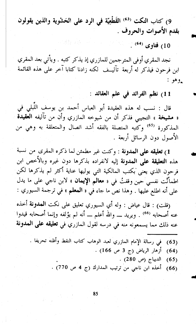 (¬63) في رسالة الإِمام المازري لعبد الوهاب كتاب النقط وأظنه تحريفا.