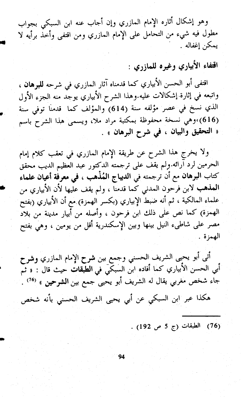 وهو إشكال أثاره الإِمام المازري وإن أجاب عنه ابن السبكي بجواب مطول فيه شيء من التحامل على الإِمام المازري ومن اقتفى وأخذ برأيه لا يمكن إغفاله.
