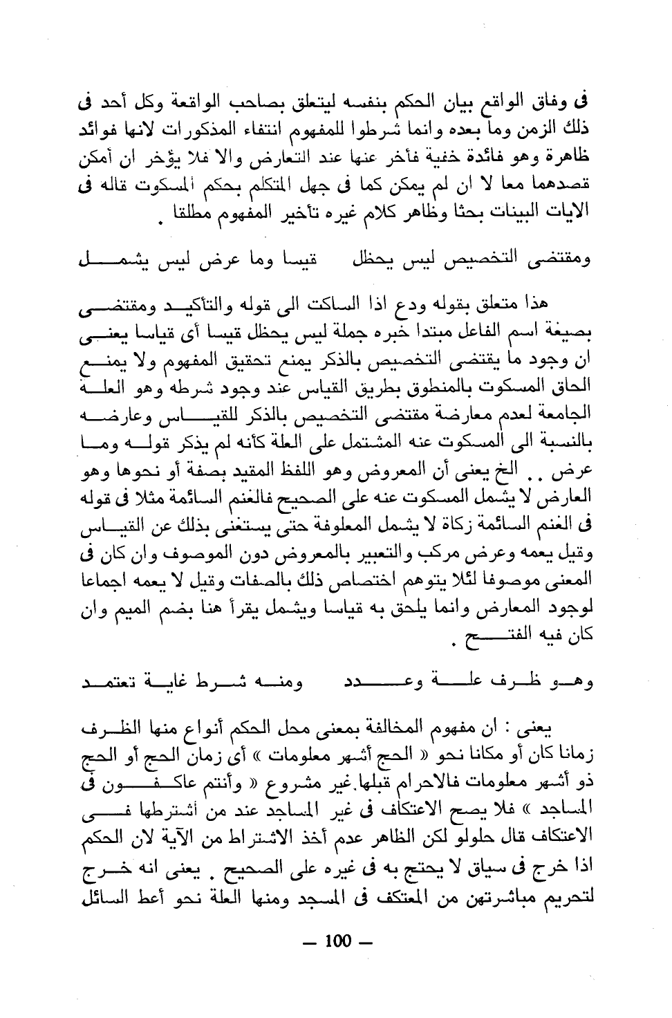 يعني: إن مفهوم المخالفة بمعنى محل الحكم أنواع منها الظرف زمانًا كان أو مكانًا نحو ((الحج أشهر معلومات)) أي زمان الحج أو الحج ذو أشهر معلومات فالإحرام قبلها غير مشروع ((وأنتم عاكفون في المساجد)) فلا يصح الاعتكاف في غير المساجد عند من اشترطها في الاعتكاف قال حلولو لكن الظاهر عدم أخذ الاشتراط من الآية لأن الحكم إذا خرج في سياق لا يحتج به في غيره على الصحيح. يعني أنه خرج لتحريم مباشرتهن من المعتكف في المسجد ومنها العلة نحو أعط السائل