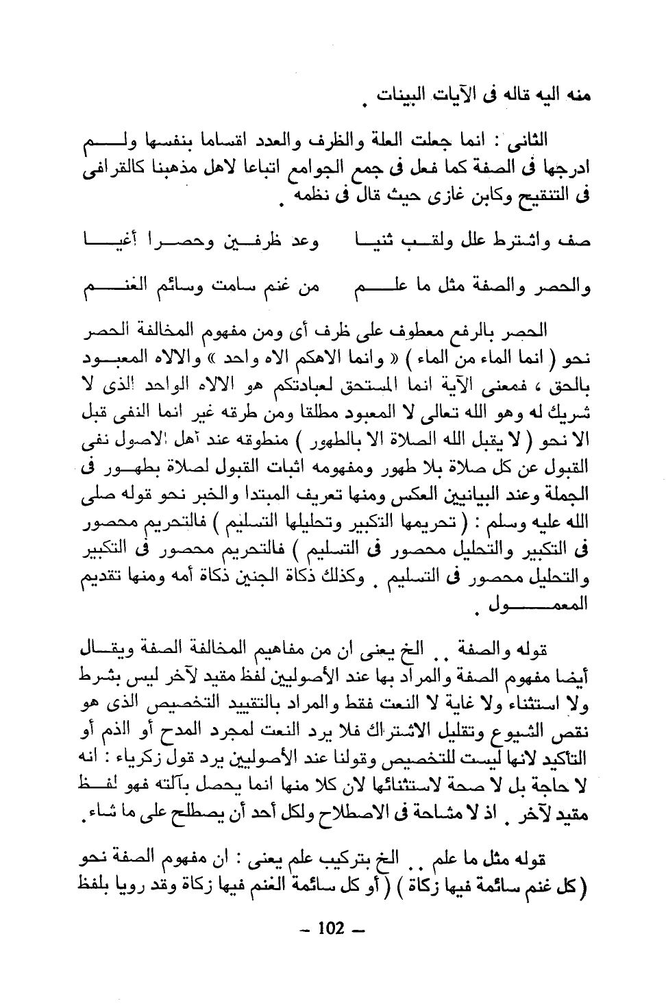 والحصر والصفة مثل ما علم ... من غنم سامت وسائم الغنم
