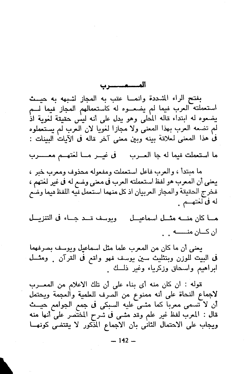 بفتح الراء المشددة وإنما عقب به المجاز لشبهه به حيث استعملته العرب فيما لم يضعون له كاستعمالهم المجاز فيما لم يضعوه له ابتداء قاله المحلى وهو يدل على أنه ليس حقيقة لغوية إذ لم تضعه العرب بهذا المعنى ولا مجازا لغويا لأن العرب لم يستعملوه في هذا المعنى لعلاقة بينه وبين معنى آخر قاله في الآيات البينات: