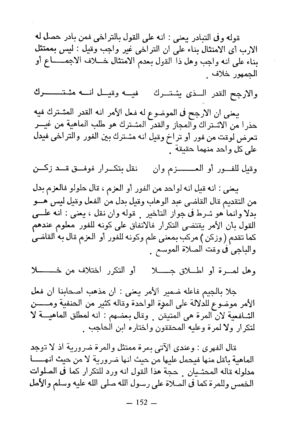 قال الفهري: وعندي الآتي بمرة ممتثل والمرة ضرورية إذ لا توجد الماهية بأقل منها فيحمل عليها من حيث أنها ضرورية لا من حيث أنها مدلولة قال المحشيان. حجة هذا القول أنه ورد للتكرار كما في الصلوات الخمس وللمرة كما في الصلاة على رسول الله صلى الله عليه وسلم والأصل