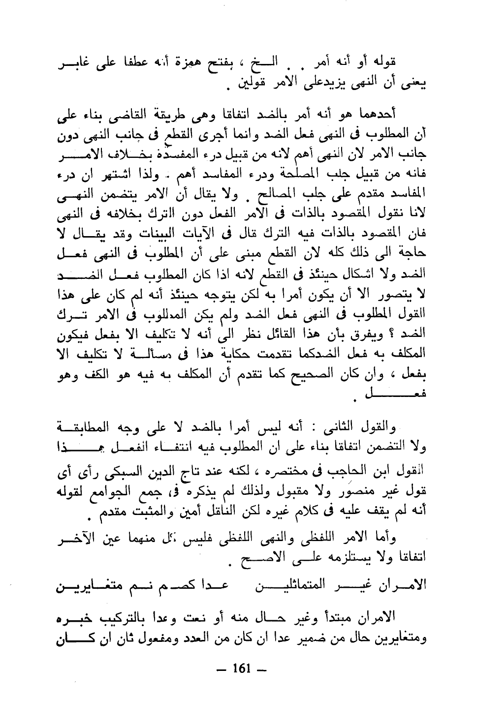 والقول الثاني: أنه ليس أمرا بالضد لا على وجه المطابقة ولا التضامن اتفاقا بناء على أن المطلوب فيه انتفاء الفعل هذا القول ابن الحاجب في مختصره، لكنه عند تاج الدين السبكي رأى أي قول غير منصور ولا مقبول ولذلك لم يذكره في جمع الجوامع لقوله أنه لم يقف عليه في كلام غيره لكن الناقل أمين والمثبت مقدم.