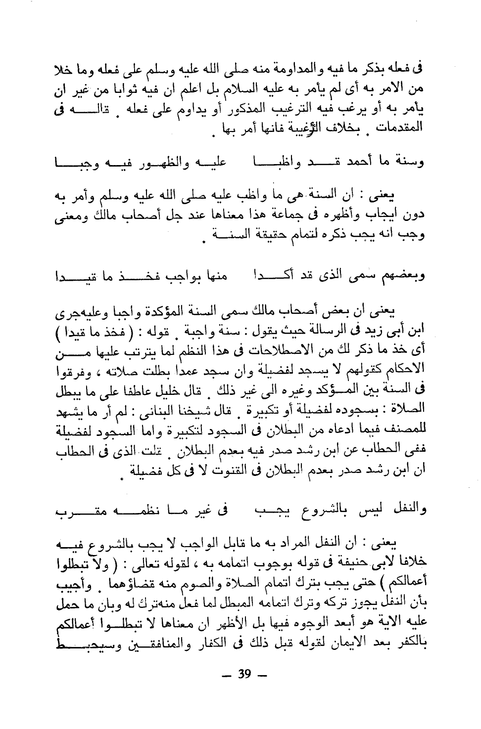 يعني أن بعض أصحاب مالك سمي السنة المؤكدة واجبًا وعليه جرى ابن أبي زيد في الرسالة حيث يقول: سنة واجبة. قوله: (فخذ ما قيدا) أي خذ ما ذكر لك من الاصطلاحات في هذا النظم لما يترتب عليها من الأحكام كقولهم لا يسجد لفضيلة وإن سجد عمدًا بطلت صلاته، وفرقوا في السنة بين المؤكد وغيره إلى غير ذلك. قال خليل عاطفًا على ما يبطل الصلاة: بسجوده لفضيلة أو تكبيرة. قال شيخنا البناني: لم أر ما يشهد للمصنف فيما ادعاه من البطلان في السجود لتكبيرة وأما السجود لفضيلة ففي الحطاب عن ابن رشد صدر فيه بعدم البطلان. قلت الذي في الحطاب أن ابن رشد صدر بعدم البطلان في القنوت لا في كل فضيلة.