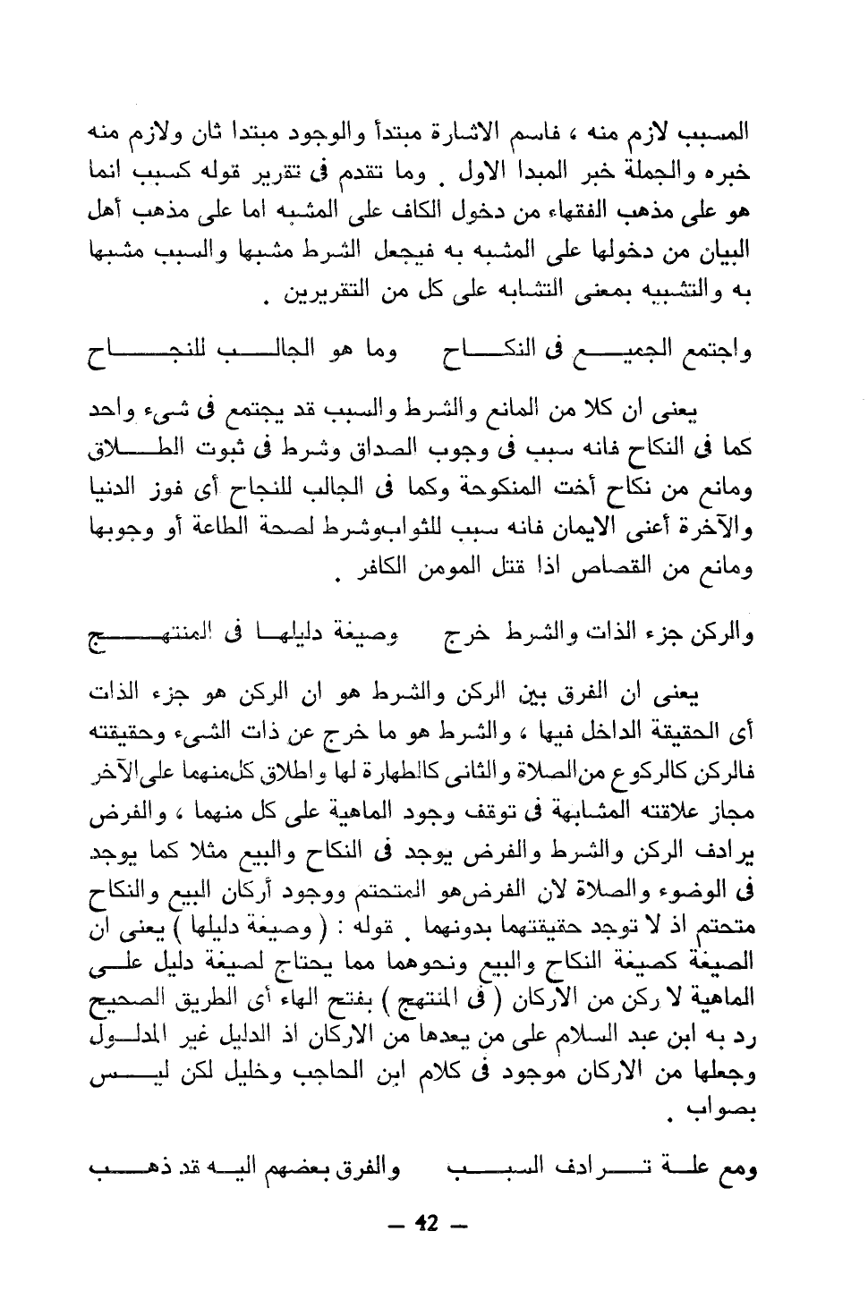 والركن جزء الذات والشرط خرج ... وصيغة دليلها في المنتهج