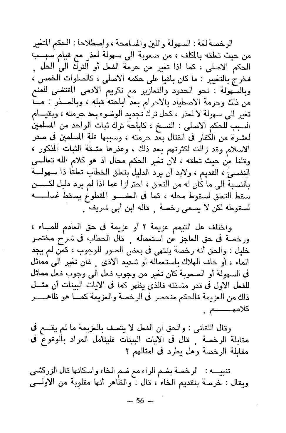 الرخصة لغة: السهولة واللين والمسامحة، واصطلاحًا: الحكم المتغير من حيث تعلقه بالمكلف، من صعوبة إلى سهولة لعذر مع قيام سبب الحكم الأصلي، كما إذا تغير من حرمة الفعل أو الترك إلى الحل. فخرج بالتغيير: ما كان باقيًا على حكمه الأصلي، كالصلوات الخمس، وبالسهولة: نحو الحدود والتعازير مع تكريم الآدمي المقتضي للمنع من ذلك وحرمة الاصطياد بالإحرام بعد إباحته قبله، وبالعذر: ما تغير إلى سهولة لا لعذر، كحل ترك تجديد الوضوء بعد حرمته، وبقيام السبب للحكم الأصلي: النسخ، كإباحة ترك ثبات الواحد من المسلمين لعشرة من الكفار في القتال بعد حرمته، وسببها قلة المسلمين في صدر الإسلام وقد زالت لكثرتهم بعد ذلك، وعذرها مشقة الثبات المذكور، وقلنا من حيث تعلقه، لأن تغير الحكم محال إذ هو كلام الله تعالى النفسي، القديم، ولابد أن يرد الدليل بتعلق الخطاب تلعقا ذا سهولة بالنسبة إلى ما كان له من التعلق، احترازًا عما إذا لم يرد دليل لكم سقط التعلق لسقوط محله، كما في العضو المقطوع يسقط غسله لسقوطه لكن لا يسمى رخصة. قاله ابن أبي شريف.