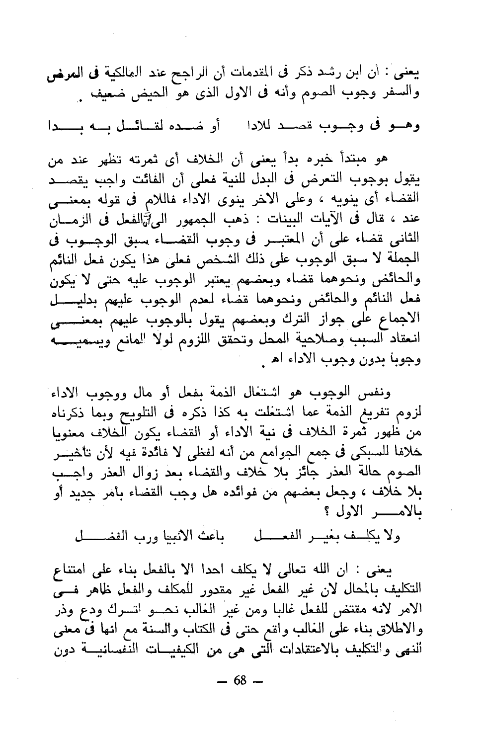 ونفس الوجوب هو اشتغال الذمة بفعل أو مال ووجوب الأداء لزوم تفريغ الذمة عما اشتغلت به كذا ذكره في التلويح وبما ذكرنا من ظهور ثمرة الخلاف في نية الأداء أو القضاء يكون الخلاف معنويًا خلافًا للسبكي في جمع الجوامع من أنه لفظي لا فائدة فيه لأن تأخير الصوم حالة العذر جائز بلا خلاف والقضاء بعد زوال العذر واجب بلا خلاف، وجعل بعضهم من فوائده هل وجب القضاء بأمر جديد أو بالأمر الأول؟