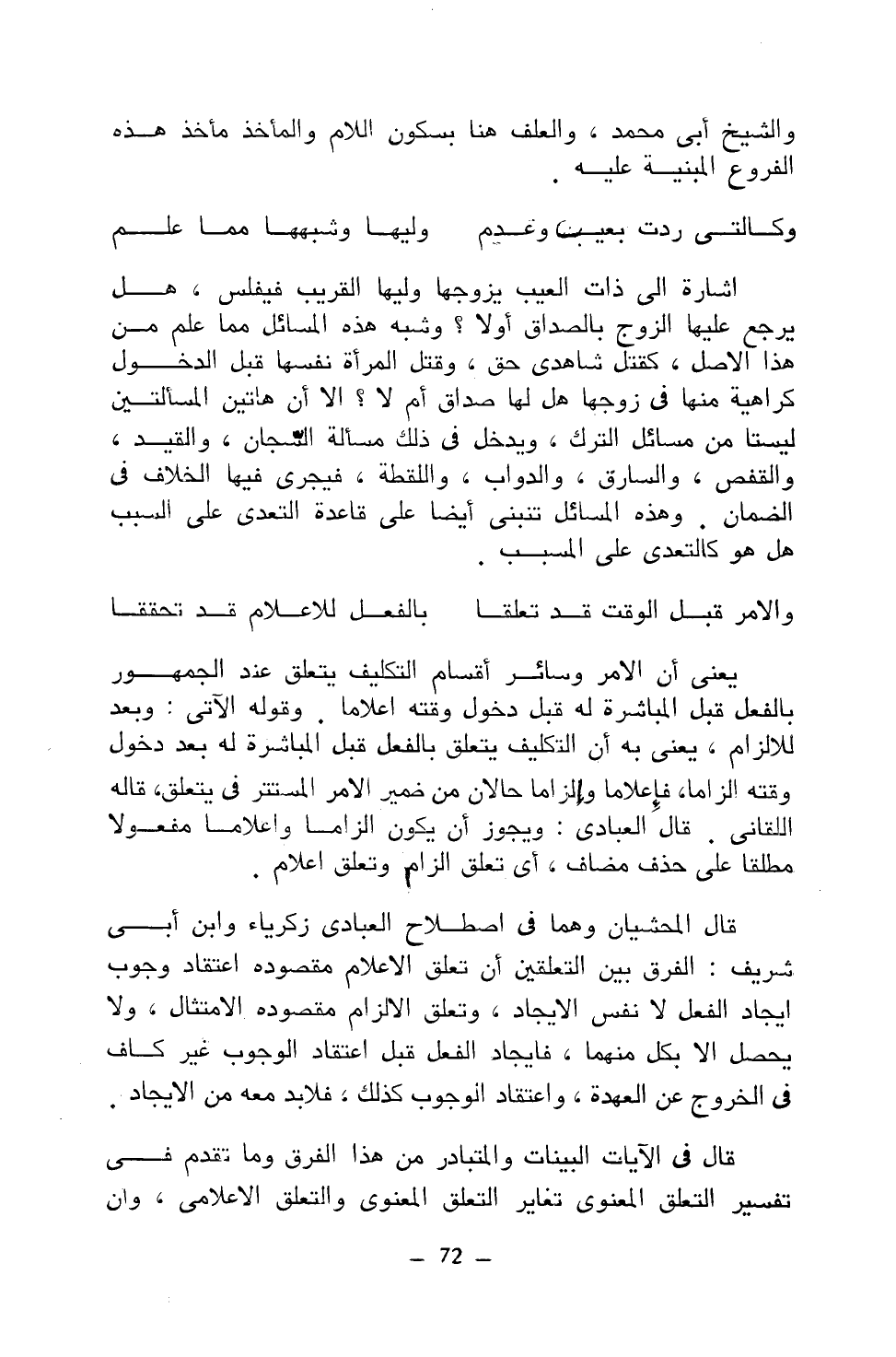 والشيخ أبي محمد، والعلف هنا بسكون اللام والمأخذ مأخذ هذه الفروع المبنية عليه.