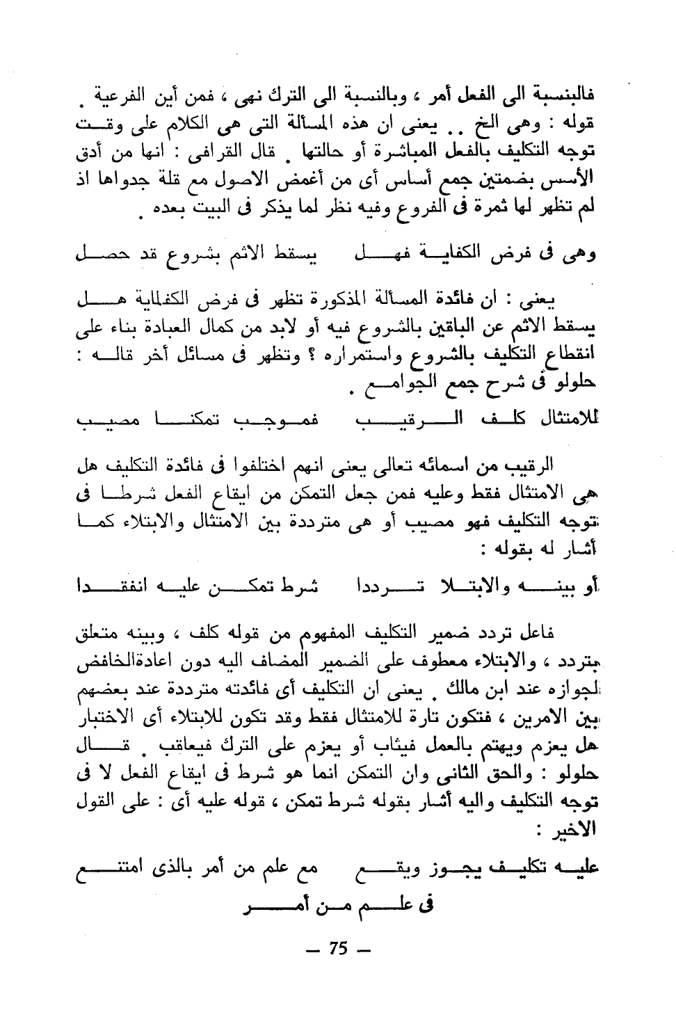 الرقيب من أسمائه تعالى يعني أنهم اختلفوا في فائدة التكليف هل هي الامتثال فقط وعليه فمن جعل التمكن من إيقاع الفعل شرطًا في توجه التكليف فهو مصيب أو هي مترددة بين الامتثال والابتلاء كما أشار له بقوله: