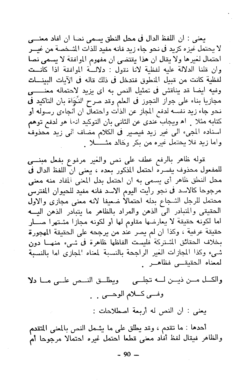 يعني: أن النص له أربعة اصطلاحات: