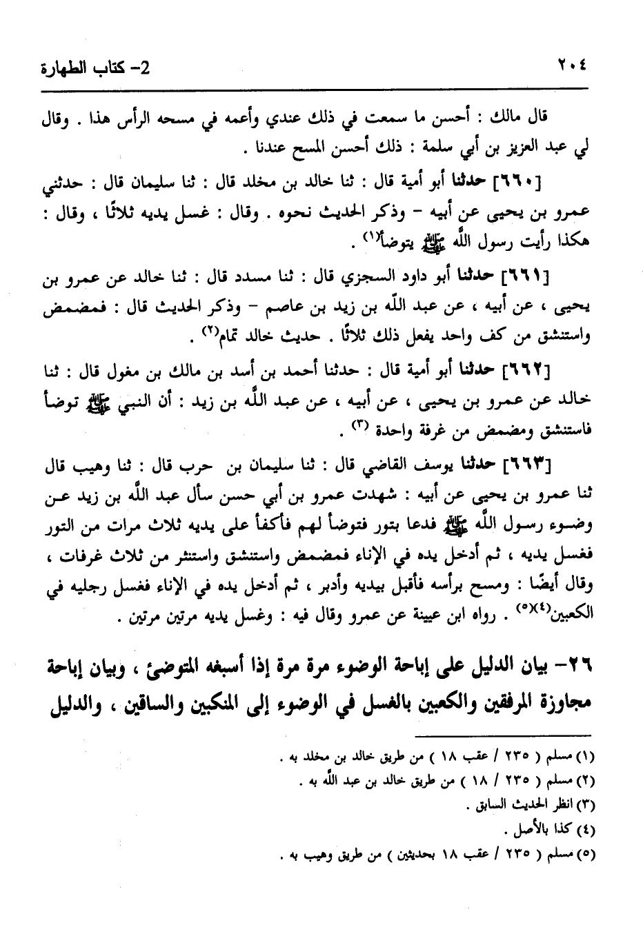 §بَيَانُ الدَّلِيلِ عَلَى إِبَاحَةِ الْوُضُوءِ مَرَّةً مَرَّةً إِذَا أَسْبَغَهُ الْمُتَوَضِّئُ، وَبَيَانُ إِبَاحَةِ مُجَاوَزَةِ الْمِرْفَقَيْنِ وَالْكَعْبَيْنِ بِالْغَسْلِ فِي الْوُضُوءِ إِلَى الْمَنْكِبَيْنِ وَالسَّاقَيْنِ، وَالدَّلِيلُ -[205]- عَلَى أَنَّ الْفَضِيلَةَ فِي تَرْكِ مُجَاوَزَتِهِمَا