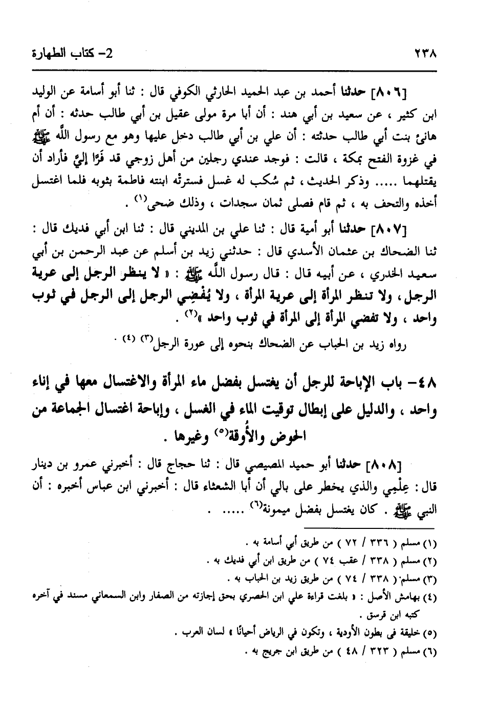 808 - حَدَّثَنَا أَبُو حُمَيْدٍ الْمِصِّيصِيُّ قَالَ: ثَنَا حَجَّاجٌ قَالَ: أَخْبَرَنِي عَمْرُو بْنُ دِينَارٍ قَالَ: - عِلْمِي وَالَّذِي يَخْطُرُ عَلَى بَالِي - أَنَّ أَبَا الشَّعْثَاءِ قَالَ: أَخْبَرَنِي ابْنُ عَبَّاسٍ أَخْبَرَهُ، «أَنَّ النَّبِيَّ صَلَّى اللهُ عَلَيْهِ وَسَلَّمَ كَانَ §يَغْتَسِلُ بِفَضْلِ مَيْمُونَةَ»