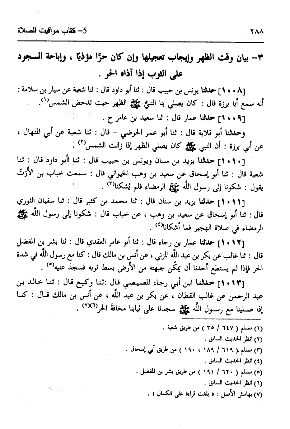 §بَيَانُ وَقْتِ الظُّهْرِ وَإِيجَابِ تَعْجِيلِهَا وَإِنْ كَانَ حُرًّا مُؤْذِيًا، وَإِبَاحَةِ السُّجُودِ عَلَى الثَّوْبِ إِذَا آذَاهُ الْحَرُّ