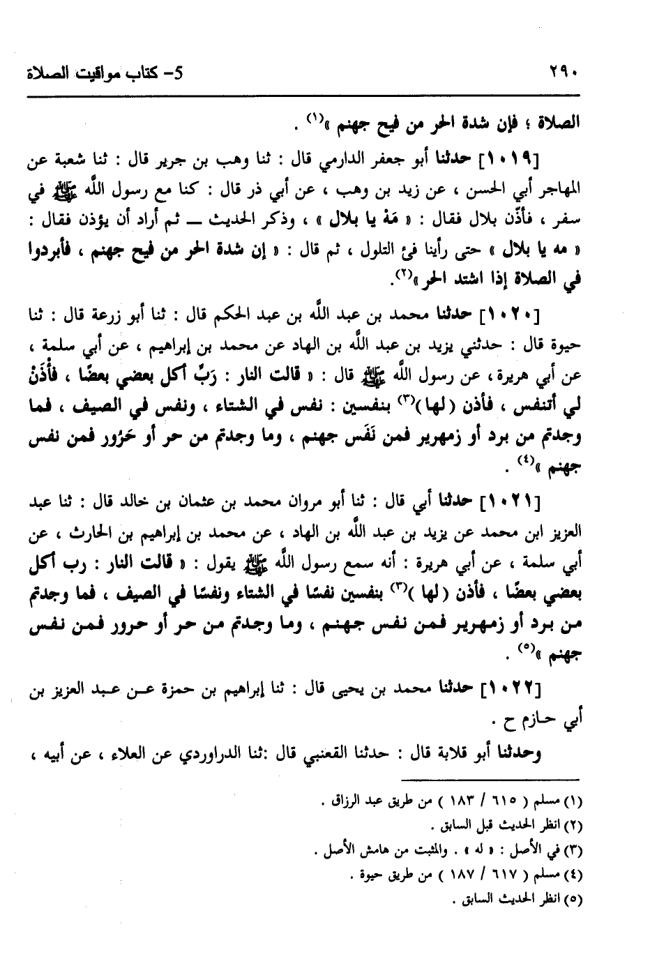 1022 - حَدَّثَنَا مُحَمَّدُ بْنُ يَحْيَى قَالَ: ثَنَا إِبْرَاهِيمُ بْنُ حَمْزَةَ، عَنْ عَبْدِ الْعَزِيزِ بْنِ أَبِي حَازِمٍ ح، وَحَدَّثَنَا أَبُو قِلَابَةَ قَالَ: حَدَّثَنَا الْقَعْنَبِيُّ قَالَ: ثَنَا الدَّرَاوَرْدِيُّ، عَنِ الْعَلَاءِ، عَنْ أَبِيهِ -[291]-، عَنْ أَبِي هُرَيْرَةَ، عَنْ رَسُولِ اللَّهِ صَلَّى اللهُ عَلَيْهِ وَسَلَّمَ قَالَ: «§هَذَا الْحَرُّ مِنْ فَيْحِ جَهَنَّمَ فَأَبْرِدُوا بِالصَّلَاةِ»