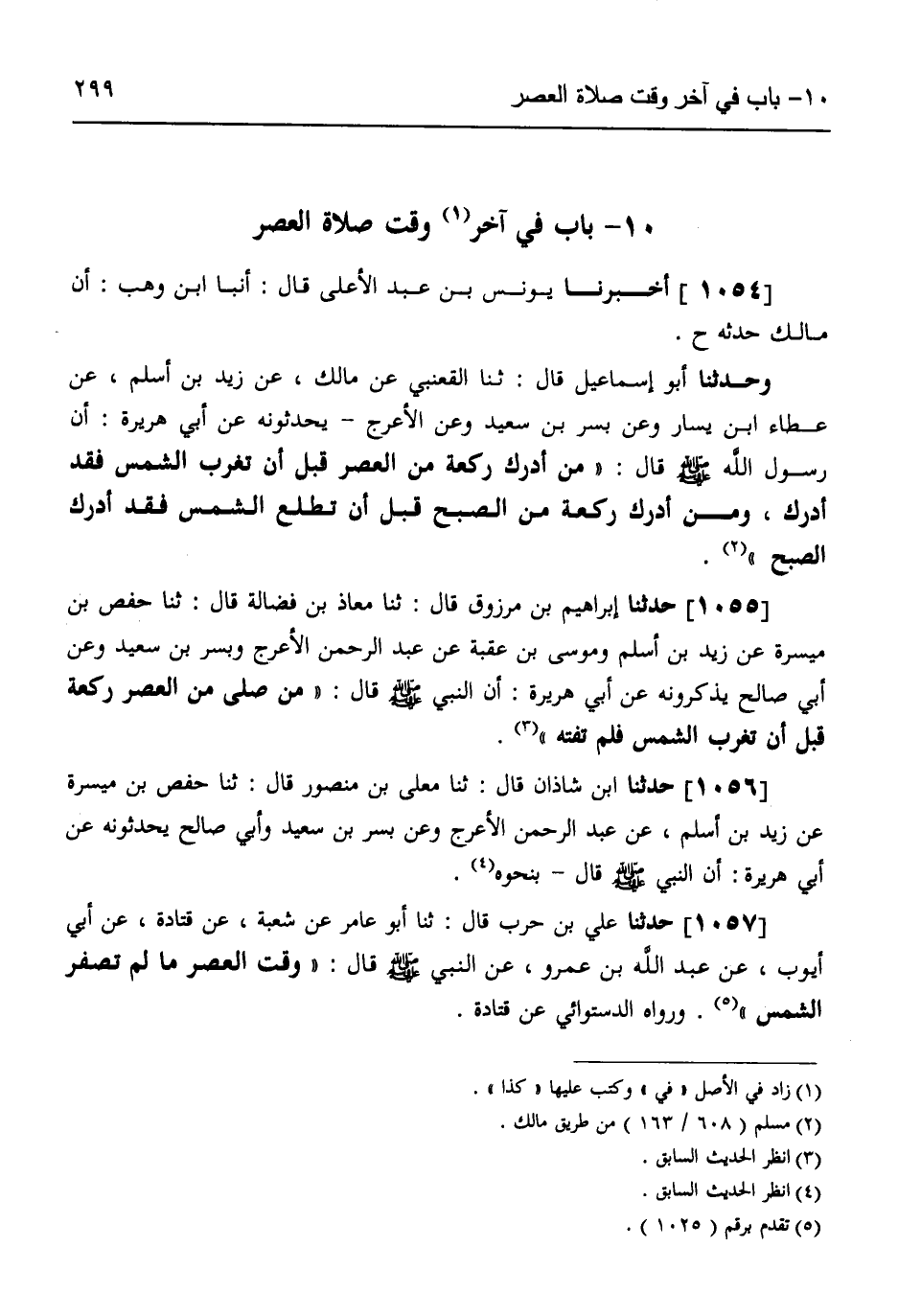 1054 - أَخْبَرَنَا يُونُسُ بْنُ عَبْدِ الْأَعْلَى قَالَ: أنبا ابْنُ وَهْبٍ، أَنَّ مَالِكًا حَدَّثَهُ ح، وَحَدَّثَنَا أَبُو إِسْمَاعِيلَ قَالَ: ثَنَا الْقَعْنَبِيُّ، عَنْ مَالِكٍ، عَنْ زَيْدِ بْنِ أَسْلَمَ، عَنْ عَطَاءِ بْنِ يَسَارٍ، وَعَنْ بُسْرِ بْنِ سَعِيدٍ، وَعَنِ الْأَعْرَجِ يُحَدِّثُونَهُ، عَنْ أَبِي هُرَيْرَةَ، أَنَّ رَسُولَ اللَّهِ صَلَّى اللهُ عَلَيْهِ وَسَلَّمَ قَالَ: «§مَنْ أَدْرَكَ رَكْعَةً مِنَ الْعَصْرِ قَبْلَ أَنْ تَغْرُبَ الشَّمْسُ فَقَدْ أَدْرَكَ، وَمَنْ أَدْرَكَ رَكْعَةً مِنَ الصُّبْحِ قَبْلَ أَنْ تَطْلُعَ الشَّمْسُ فَقَدْ أَدْرَكَ الصُّبْحَ»