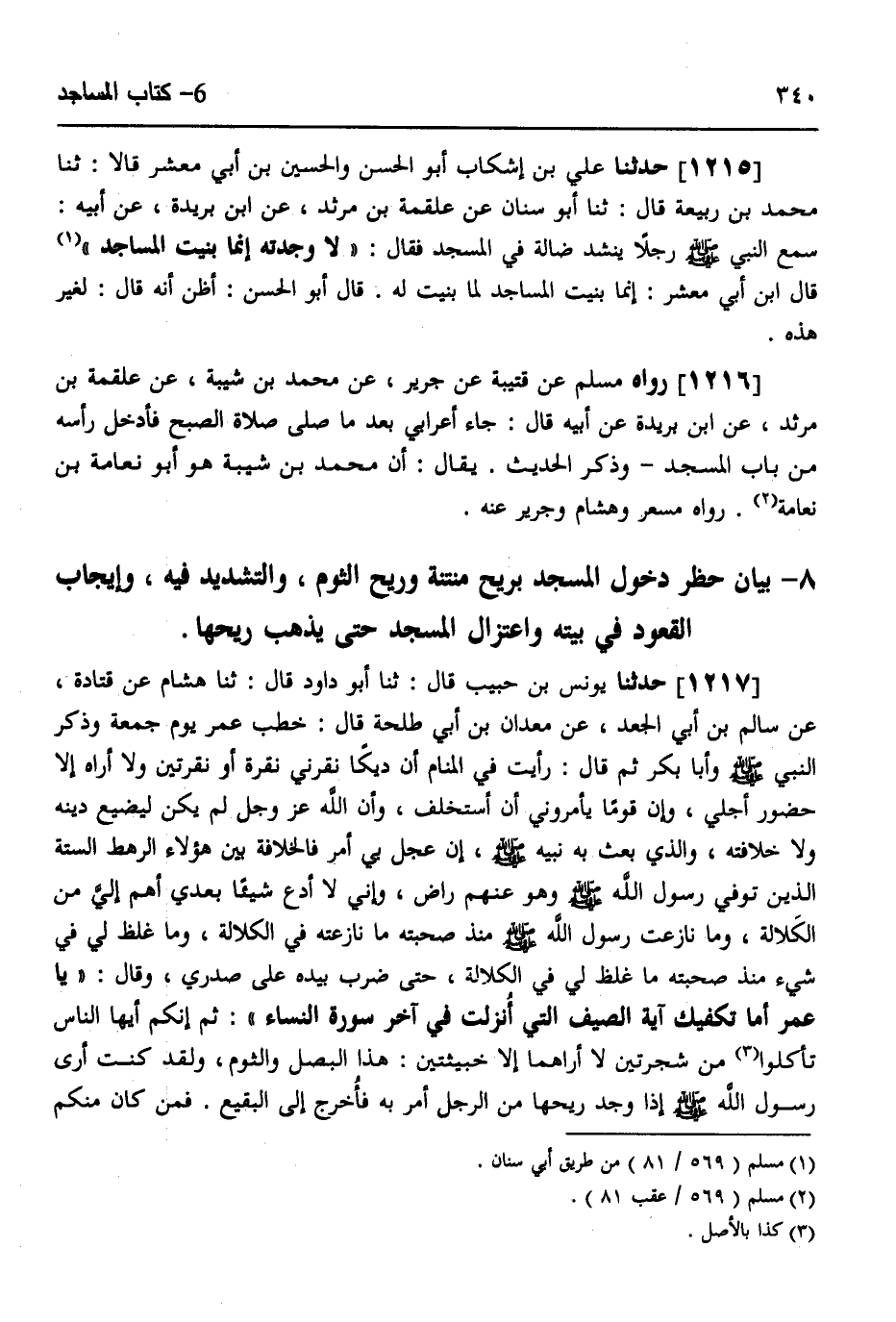 1216 - رَوَاهُ مُسْلِمٌ، عَنْ قُتَيْبَةَ، عَنْ جَرِيرٍ، عَنْ مُحَمَّدِ بْنِ شَيْبَةَ، عَنْ عَلْقَمَةَ بْنِ مَرْثَدٍ، عَنِ ابْنِ بُرَيْدَةَ، عَنْ أَبِيهِ قَالَ: جَاءَ أَعْرَابِيٌّ بَعْدَ مَا صَلَّى صَلَاةَ الصُّبْحِ، فَأَدْخَلَ رَأْسَهُ مِنْ بَابِ الْمَسْجِدِ. وَذَكَرَ الْحَدِيثَ، يُقَالُ إنَّ مُحَمَّدَ بْنَ شَيْبَةَ هُوَ أَبُو نَعَامَةَ بْنُ نَعَامَةَ. رَوَاهُ مِسْعَرٌ وَهِشَامٌ وَجَرِيرٌ عَنْهُ