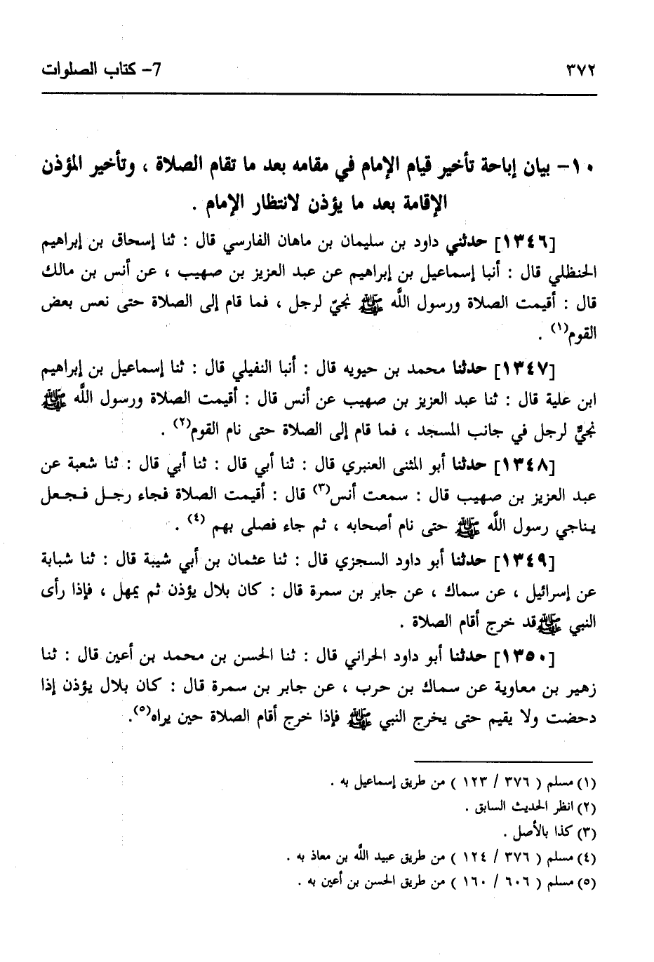 1346 - حَدَّثَنِي دَاوُدُ بْنُ سُلَيْمَانَ بْنِ مَاهَانَ الْفَارِسِيُّ قَالَ: ثَنَا إِسْحَاقُ بْنُ إِبْرَاهِيمَ الْحَنْظَلِيُّ قَالَ: أنبا إِسْمَاعِيلُ بْنُ إِبْرَاهِيمَ، عَنْ عَبْدِ الْعَزِيزِ بْنِ صُهَيْبٍ، عَنْ أَنَسِ بْنِ مَالِكٍ قَالَ: «§أُقِيمَتِ الصَّلَاةُ وَرَسُولُ اللَّهِ صَلَّى اللهُ عَلَيْهِ وَسَلَّمَ نَجِيٌّ لِرَجُلٍ، فَمَا قَامَ إِلَى الصَّلَاةِ حَتَّى نَعَسَ بَعْضُ الْقَوْمِ»