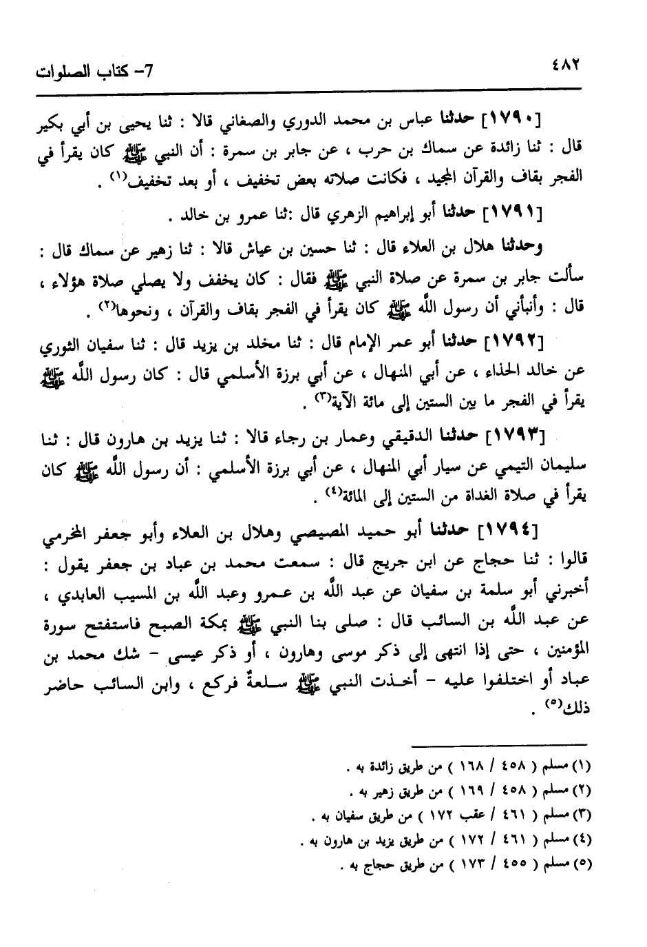 1792 - حَدَّثَنَا أَبُو عُمَرَ الْإِمَامُ قَالَ: ثَنَا مَخْلَدُ بْنُ يَزِيدَ قَالَ: ثَنَا سُفْيَانُ الثَّوْرِيُّ، عَنْ خَالِدٍ الْحَذَّاءِ، عَنْ أَبِي الْمِنْهَالِ، عَنْ أَبِي بَرْزَةَ الْأَسْلَمِيِّ قَالَ: «كَانَ رَسُولُ اللَّهِ صَلَّى اللهُ عَلَيْهِ وَسَلَّمَ §يَقْرَأُ فِي الْفَجْرِ مَا بَيْنَ السِّتِّينَ إِلَى مِائَةِ الْآيَةِ»