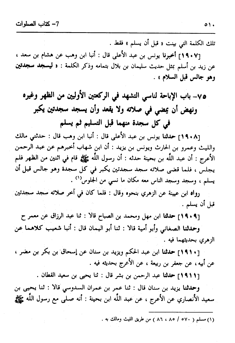 1911 - حَدَّثَنَا عَبْدُ الرَّحْمَنِ بْنُ بِشْرٍ قَالَ: ثَنَا يَحْيَى بْنُ سَعِيدٍ الْقَطَّانُ، وَحَدَّثَنَا يَزِيدُ بْنُ سِنَانٍ قَالَ: ثَنَا عُمَرُ بْنُ عِمْرَانَ السَّدُوسِيُّ قَالَا: ثَنَا يَحْيَى بْنُ سَعِيدٍ الْأَنْصَارِيُّ، عَنِ الْأَعْرَجِ، عَنْ عَبْدِ اللَّهِ ابْنِ بُحَيْنَةَ، «أَنَّهُ §صَلَّى مَعَ رَسُولِ اللَّهِ صَلَّى اللهُ عَلَيْهِ وَسَلَّمَ -[511]- الظُّهْرَ» فَذَكَرَهُ