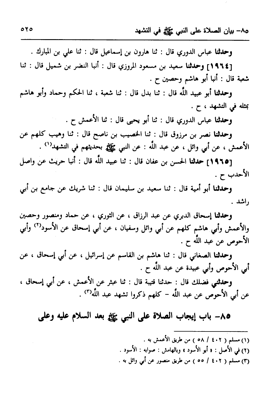 §بَابُ إِيجَابِ الصَّلَاةِ عَلَى النَّبِيِّ صَلَّى اللهُ عَلَيْهِ وَسَلَّمَ بَعْدَ السَّلَامِ عَلَيْهِ وَعَلَى -[526]- عِبَادِ اللَّهِ الصَّالِحِينَ فِي التَّشَهُّدِ وَثَوَابِهِ
