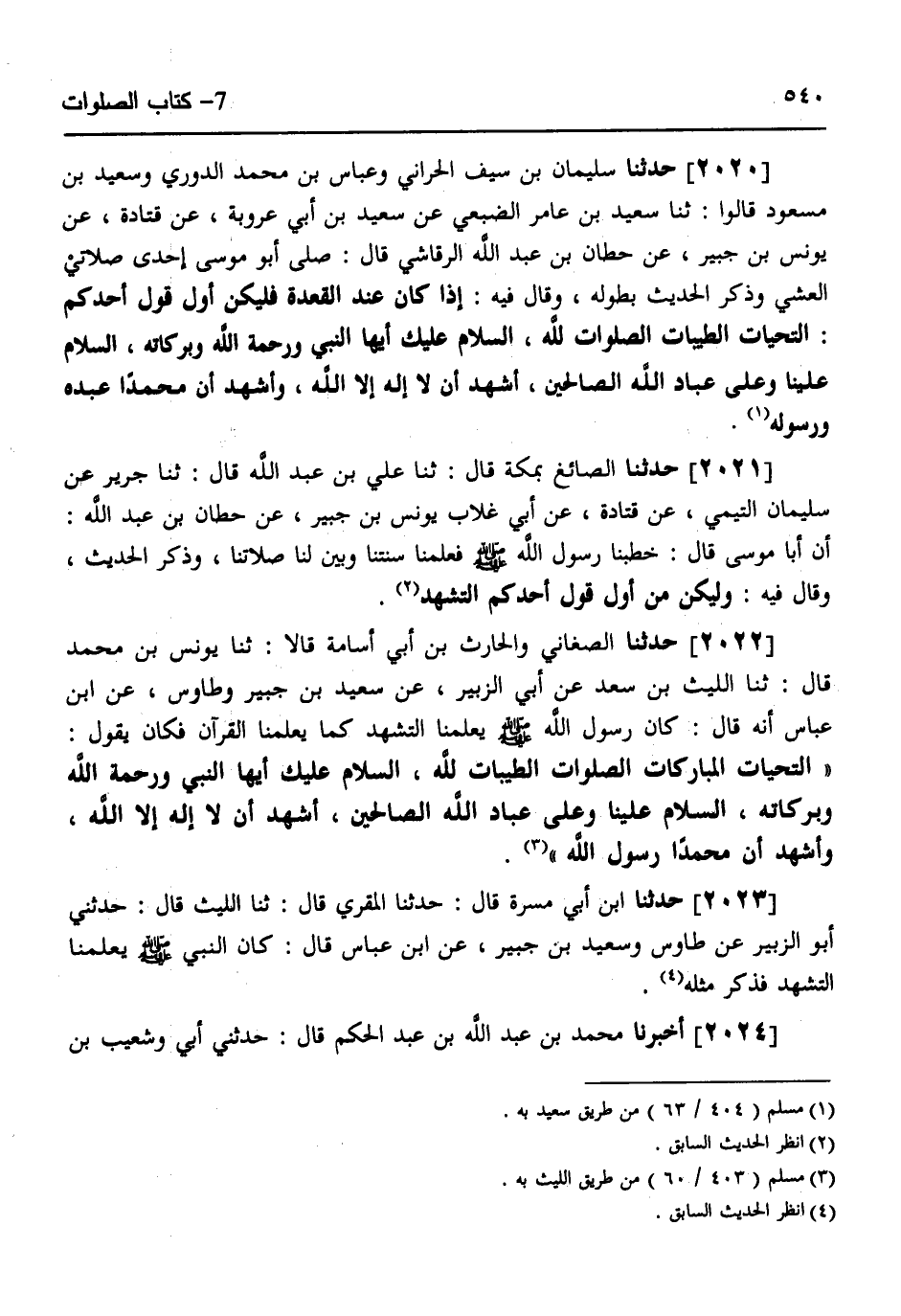 2022 - حَدَّثَنَا الصَّغَانِيُّ، وَالْحَارِثُ بْنُ أَبِي أُسَامَةَ قَالَا: ثَنَا يُونُسُ بْنُ مُحَمَّدٍ قَالَ: ثَنَا اللَّيْثُ بْنُ سَعْدٍ، عَنْ أَبِي الزُّبَيْرِ، عَنْ سَعِيدِ بْنِ جُبَيْرٍ، وَطَاوُسٍ، عَنِ ابْنِ عَبَّاسٍ أَنَّهُ قَالَ: " §كَانَ رَسُولُ اللَّهِ صَلَّى اللهُ عَلَيْهِ وَسَلَّمَ يُعَلِّمُنَا التَّشَهُّدَ كَمَا يُعَلِّمُنَا الْقُرْآنَ فَكَانَ يَقُولُ: «التَّحِيَّاتُ الْمُبَارَكَاتُ الصَّلَوَاتُ الطَّيِّبَاتُ لِلَّهِ، السَّلَامُ عَلَيْكَ أَيُّهَا النَّبِيُّ وَرَحْمَةُ اللَّهِ وَبَرَكَاتُهُ، السَّلَامُ عَلَيْنَا وَعَلَى عِبَادِ اللَّهِ الصَّالِحِينَ، أَشْهَدُ أَنْ لَا إِلَهَ إِلَّا اللَّهُ وَأَشْهَدُ أَنَّ مُحَمَّدًا رَسُولُ اللَّهِ»