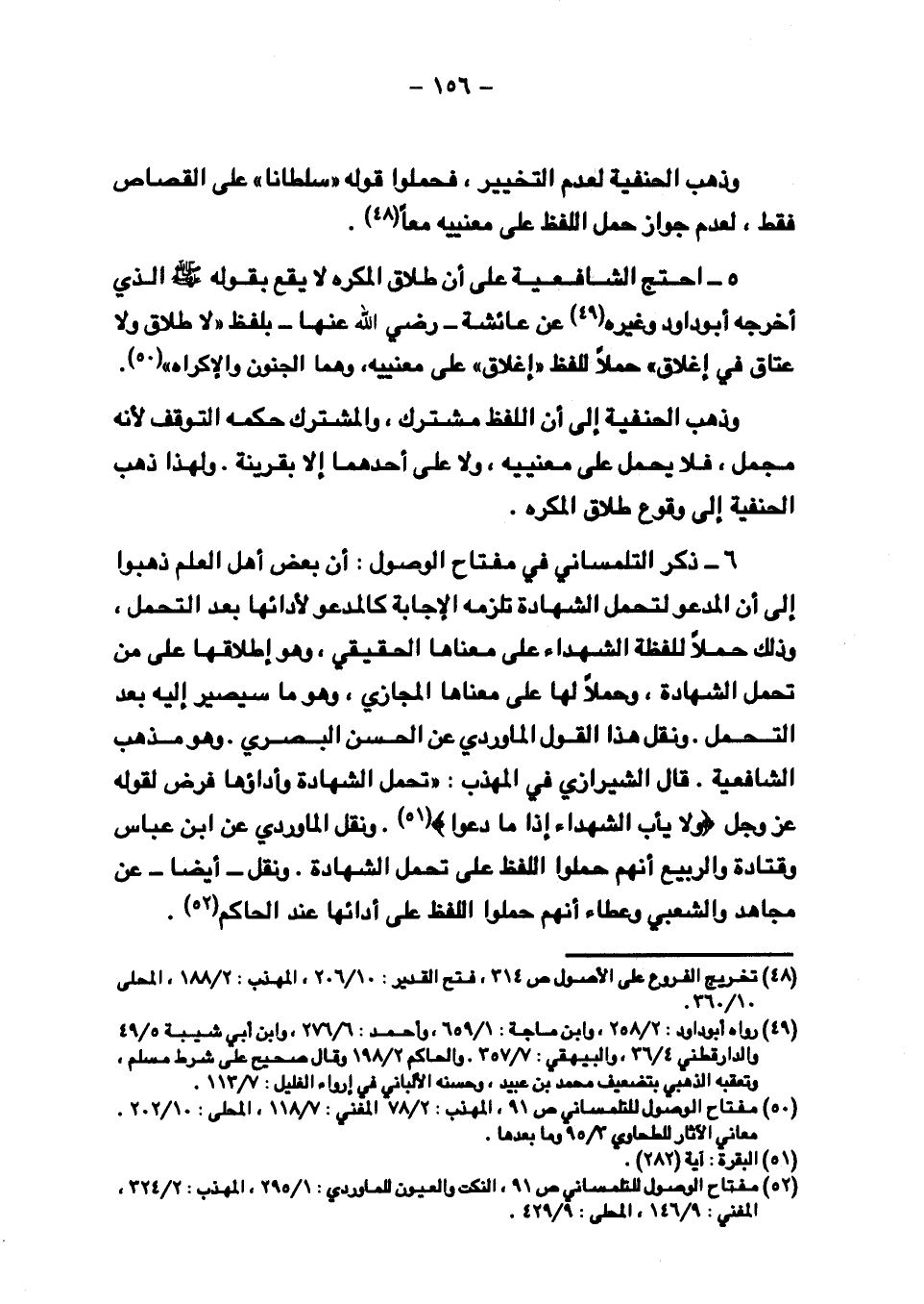 ٥ - احتج الشافعية على أن طلاق المكره لا يقع بقوله - صلى الله عليه وسلم - الذي أخرجه أبو داود وغيره عن عائشة - رضي الله عنها - بلفظ ((لا طلاق ولا عتاق في إغلاق)) حملا للفظ على معنييه? وهما الجنون والإكراه)).
