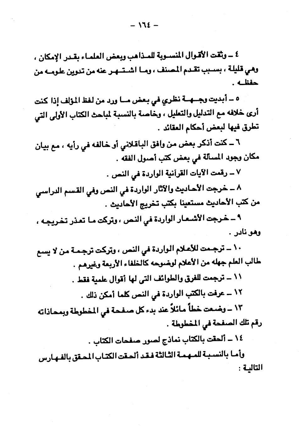 ١٤ - وأما بالنسبة للمهمة الثالثة فقد ألحقت الكتاب المحقق بالفهارس التالية: