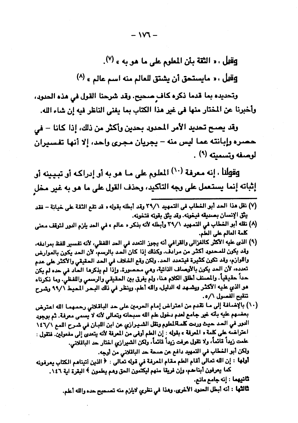 وقولنا"إنه معرفة المعلوم على ما هو به أو إدراكه أو تبيينه أو إثباته إنما يستعمل على وجه التأكيد, وحذف القول على ما هو به غير مخل