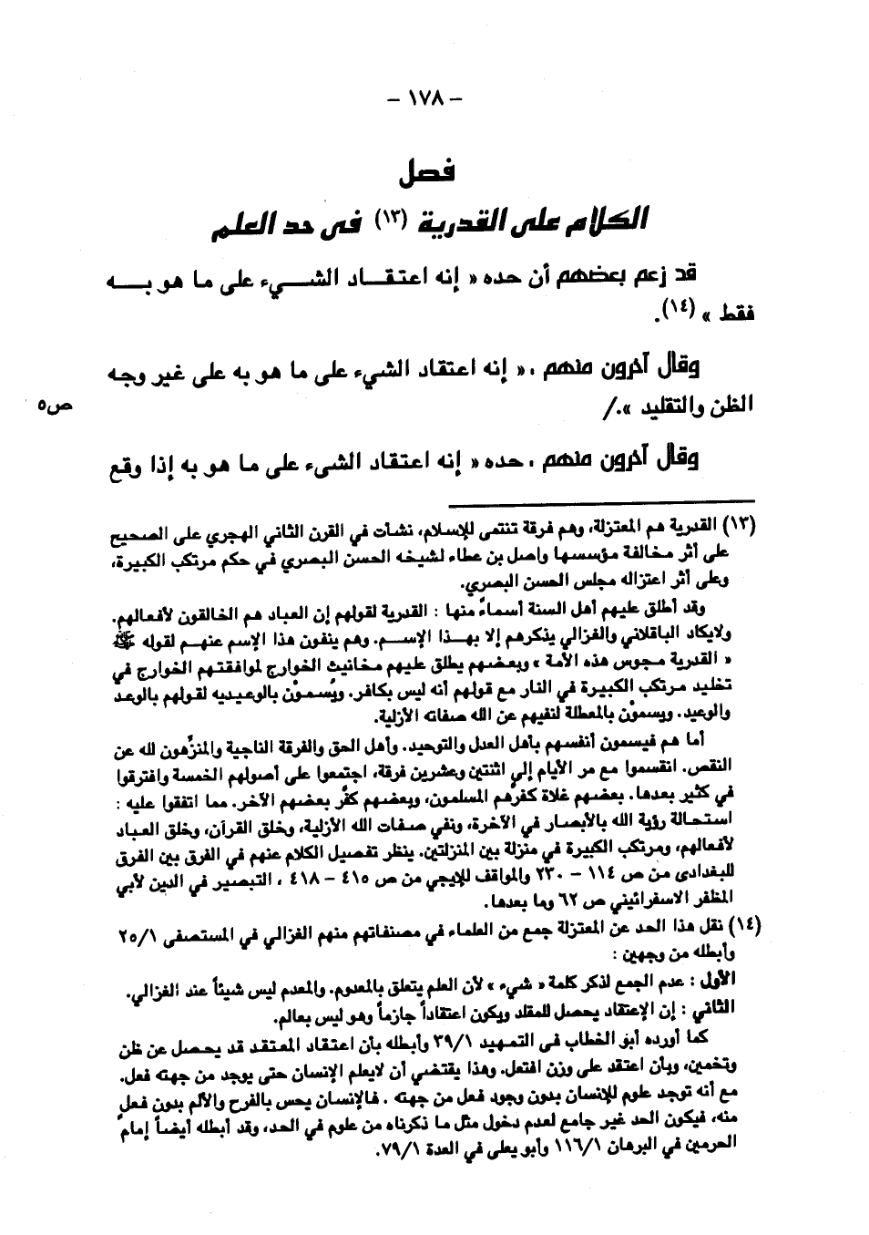 وقال آخرون منهم:" إنه اعتقاد الشيء على ما هو به على غير وجه الظن والتقليد". ⦗٥⦘