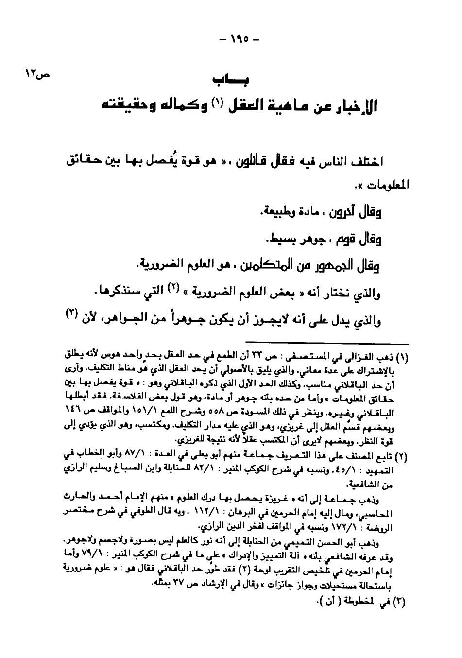 وقال الجمهور من المتكلمين: هو العلوم الضرورية.