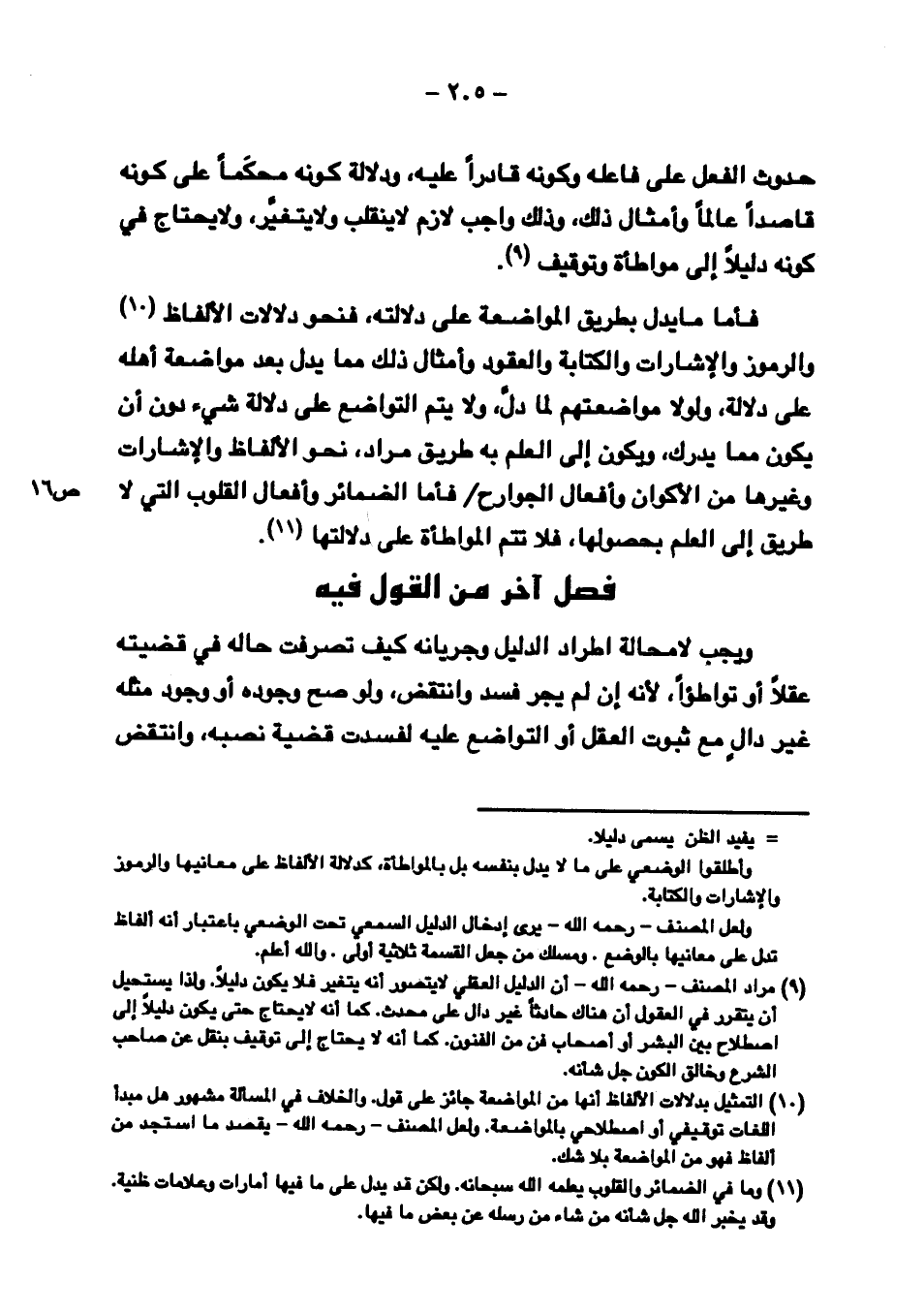 فأما ما يدل بطريق المواضعة علا دلالته, فنحو دلالات الألفاظ والرموز والإشارات والكتابة والعقود وأمثال ذلك مما يدل بعد مواضعة أهله على دلالة, ولولا مواضعتهم لما دل, ولا يتم التواضع على دلالة شيء دون أن يمكن مما يدرك، ويكون إلى العلم به طريق مراد, نحو الألفاظ والإشارات وغيرها من الأكوان وأفعال الجوارح ⦗١٦⦘ فأما الضمائر وأفعال القلوب التي لا طريق إلى العلم بحصولها, فلا تتم المواطأة على دلالتها.