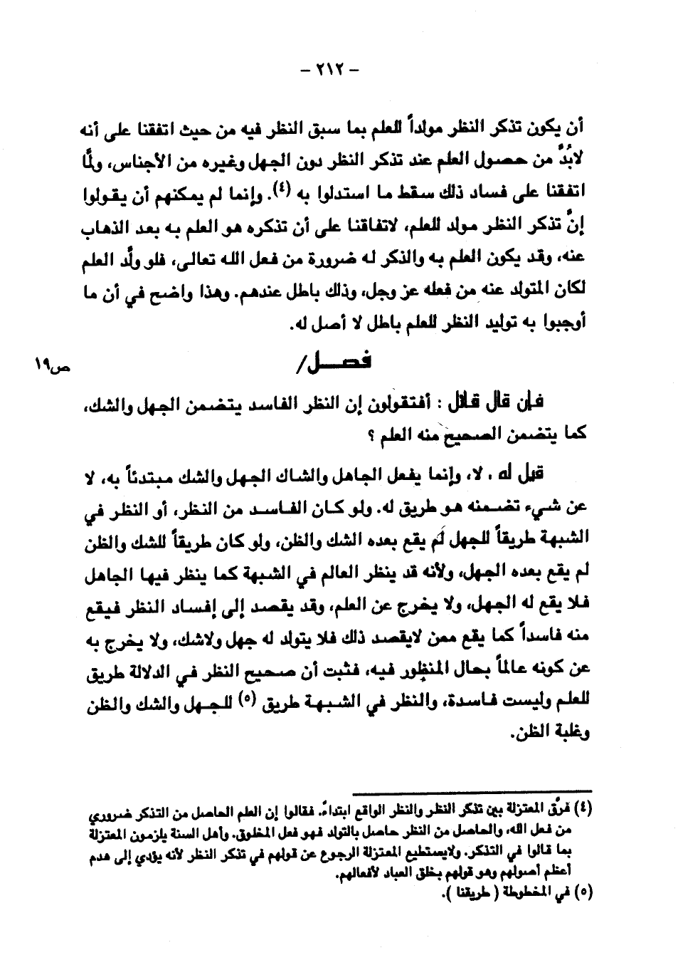 قيل له: لا, وإنما يفعل الجاهل والشاك والجهل والشك مبتدئا به, لا عن شيء تضمنه هو طريق له. ولو كان الفاسد من النظر, أو النظر في الشبهة طريقا للجهل لم يقع بعده الشك والظن، ولو كان طريقا للشك والظن لم يقع بعده الجهل, ولأنه قد ينظر العالم في الشبهة كما ينظر فيها الجاهل فلا يقع له الجهل, ولا يخرج عن العلم, وقد يقصد إلى إفساد النظر فيقع منه فاسدا كما يقع ممن لا يقصد ذلك فلا يتولد له جهل ولا شك, ولا يخرج به عن كونه عالما بحال المنظور فيه, فثبت أن صحيح النظر في الدلالة طريق للعلم وليست فاسدة, والنظر في الشبهة طريق للجهل والشك والظن وغلبة الظن.