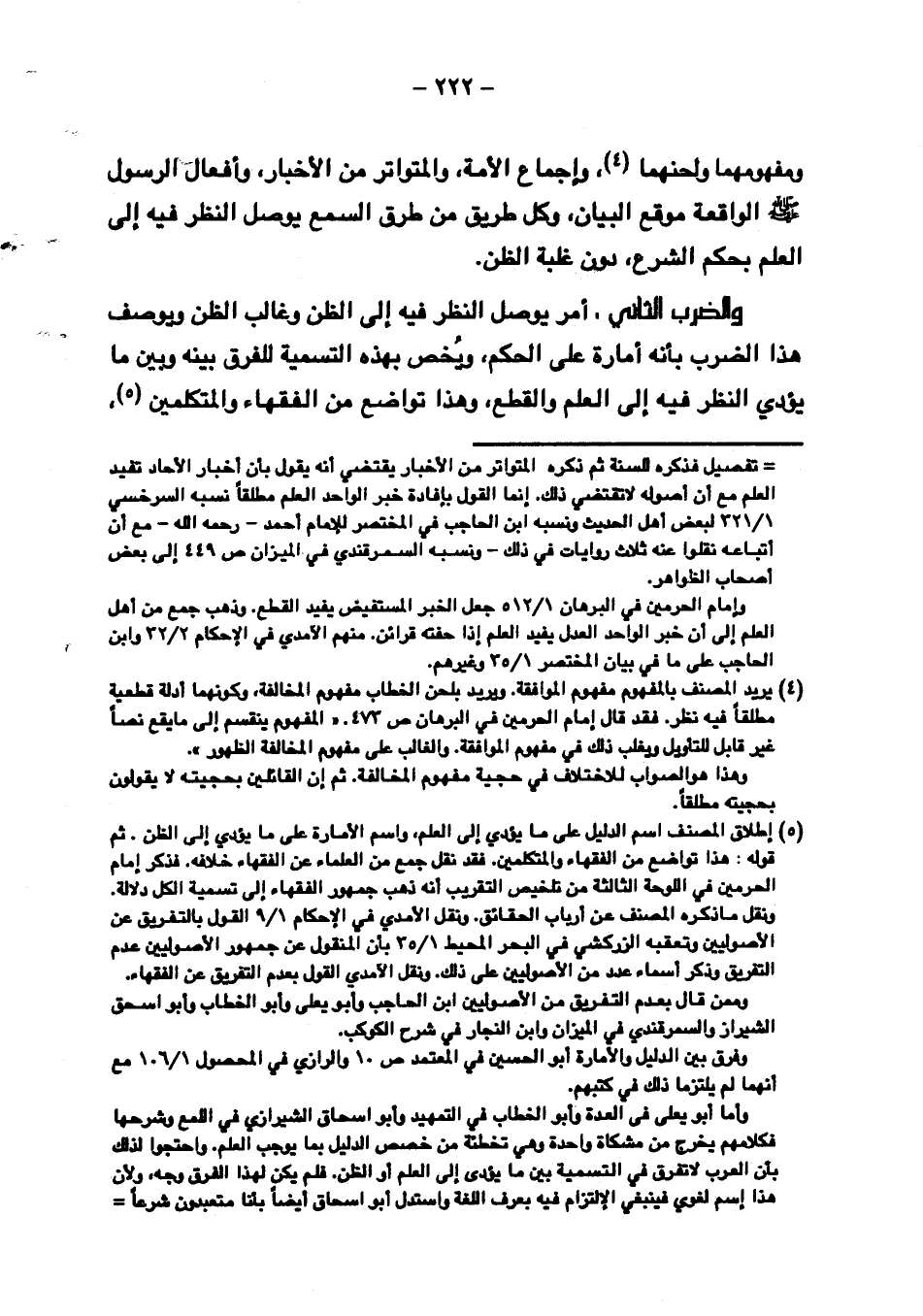 والضرب الثاني، أمر يوصل النظر فيه إلى الظن وغالب الظن ويوصف هذا الضرب بأنه أمارة على الحكم، ويخص بهذه التسمية للفرق بينه وبين ما يؤدي النظر فيه إلى العلم والقطع، وهذا تواضع من الفقهاء والمتكلمين،