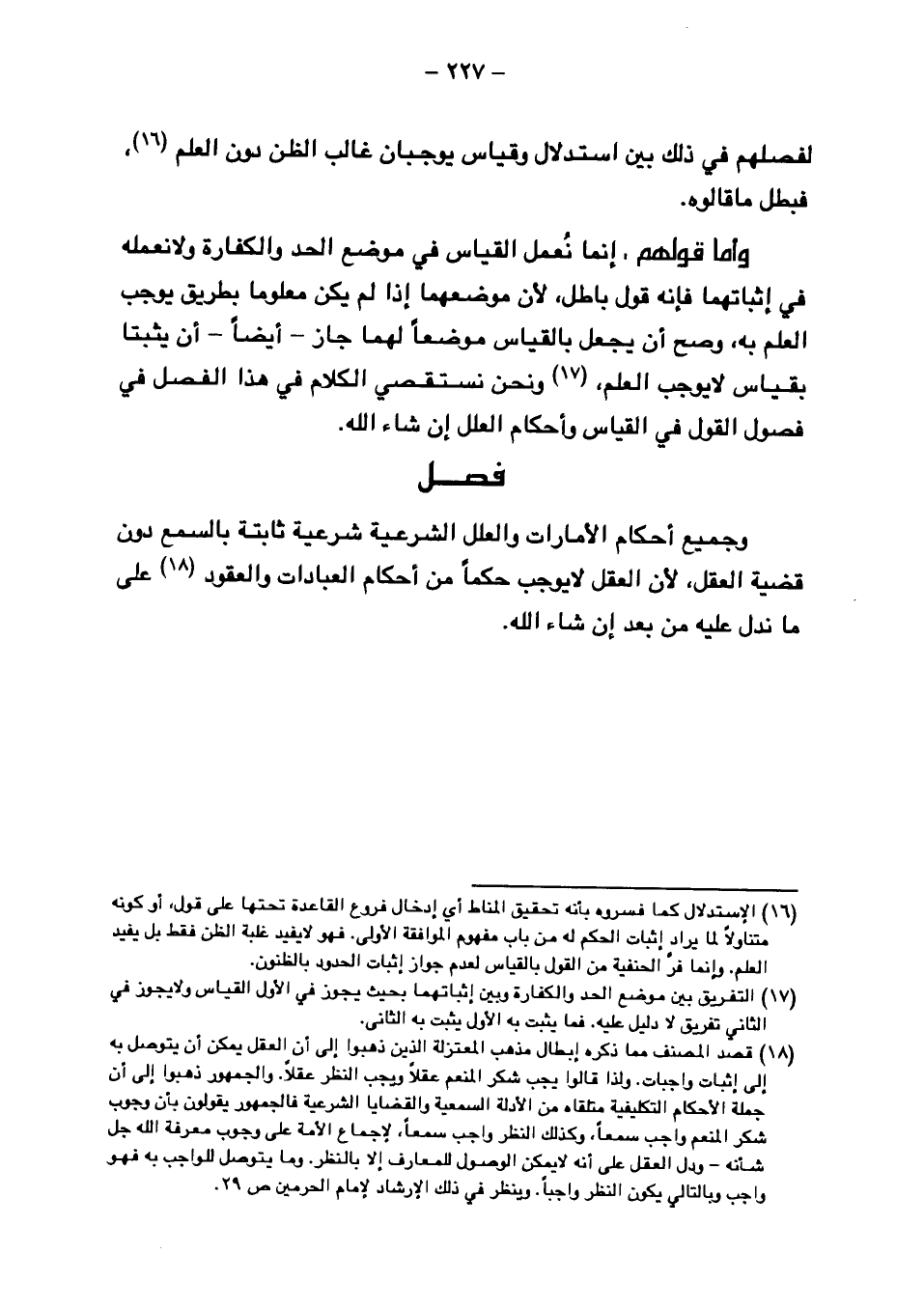 وأما قولهم، إنما نعمل القياس في موضع الحد والكفارة ولا نعلمه في إثباتهما فإنه قول باطل، لأن موضعهما إذا لم يكن معلوماً بطريق يوجب العلم به، وصح أن يجعل بالقياس موضعاً لهما جاز- أيضاً- أن يثبتا بقياس لا يوجب العلم، ونحن نستقصي الكلام في هذا الفصل في فصول القول في القياس وأحكام العلل إن شاء الله.