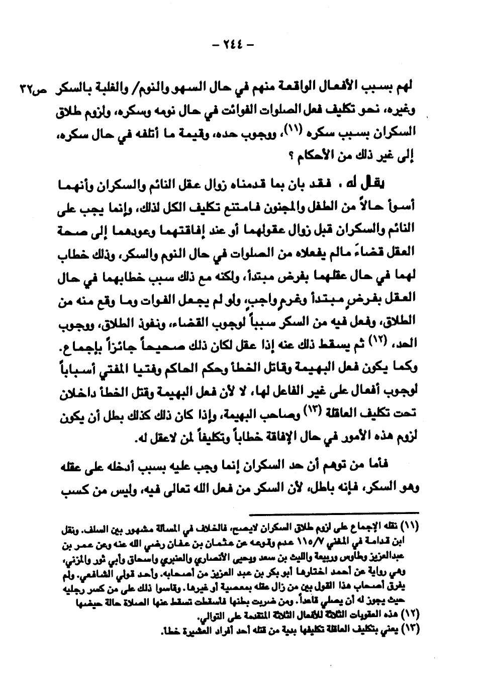 وكما يكون فعل البهيمة وقاتل الخطأ وحكم الحاكم وفتيا المفتي أسبابًا لوجوب أفعال على غير الفاعل لها, لا لأن فعل البهيمة وقتل الخطأ داخلان تحت تكليف العاقلة وصاحب البهيمة, وإذا كان ذلك كذلك بطل أن يكون لزوم هذه الأمور في حال الإفاقة خطابًا وتكليفًا لمن لا عقل له.