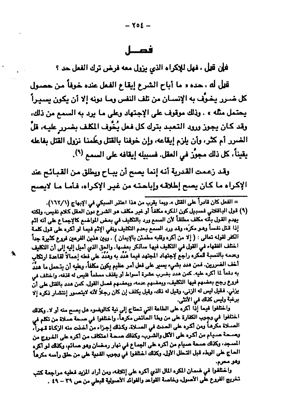 قيل له: حده " ما أباح الشرع إيقاع الفعل عنده خوفًا من حصول كل ضرر يخوَّف به الإنسان من تلف النفس وما دونه إلا أن يكون يسيرًا يحتمل مثله"، وذلك موقوف على الاجتهاد وعلى ما يرد به السمع من ذلك, وقد كان يجوز ورود التعبد بترك كل فعل يخوف المكلف بضرر عليه, قل الضرر أم كثر, وأن يلزم إيقاعه, وإن خوفنا بالقتل وعلمنا نزول القتل بفاعله يقينًا, كل ذلك مجوز في العقل, فسبيله إيقافه على السمع.