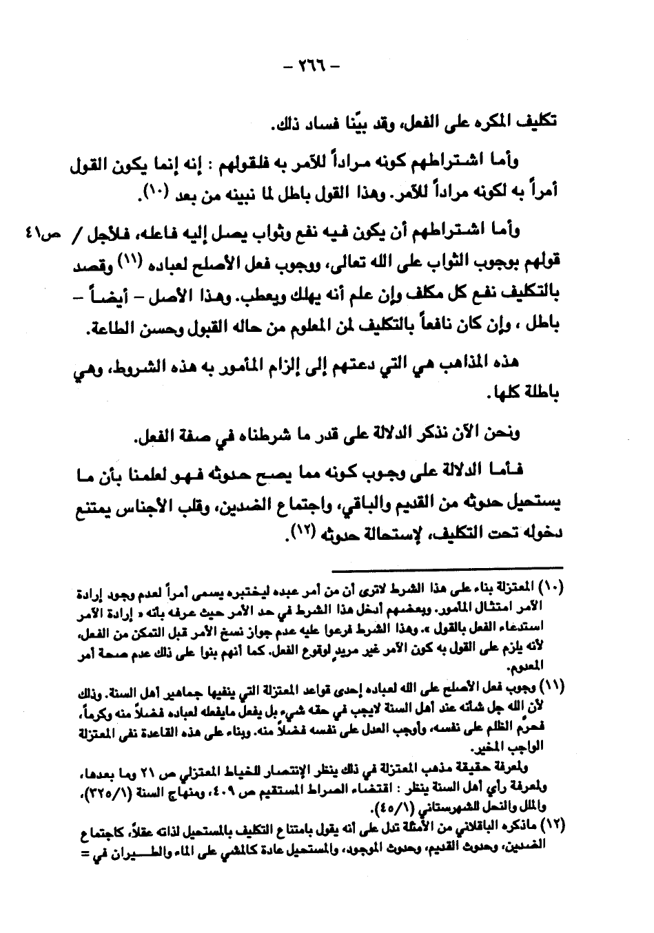 وأما اشتراطهم أن يكون فيه نفع وثواب يصل إليه فاعله, فلأجل/ ص ٤١ قولهم بوجوب الثواب على الله تعالى, ووجوب فعل الأصلح لعباده وقصد بالتكليف نفع كل مكلف وإن علم أنه يهلك ويعطب, وهذا الأصل - أيضًا - باطل, وإن كان نافعًا بالتكليف لمن المعلوم من حالة القبول وحسن الطاعة.