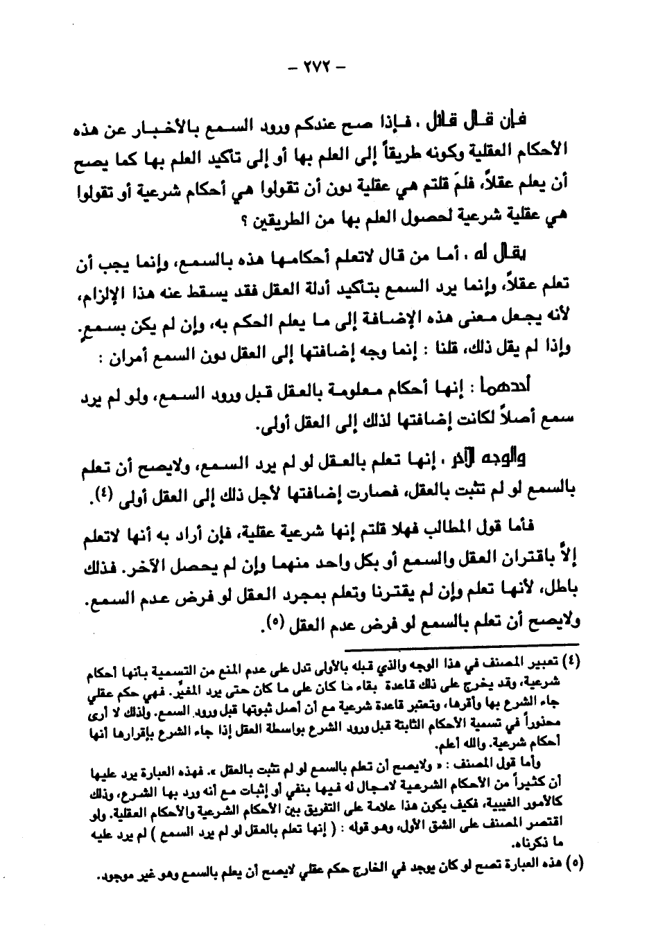 فإن قال قائل, فإذا صح عندكم ورود السمع بالأخبار عن هذه الأحكام العقلية وكونه طريقًا إلى العلم بها أو إلى تأكيد العلم بها كما يصح أن يعلم عقلًا, فلم قلتم هي عقلية دون أن تقولوا هي أحكام شرعية أو تقولوا هي عقلية شرعية لحصول العلم بها من الطريقتين؟