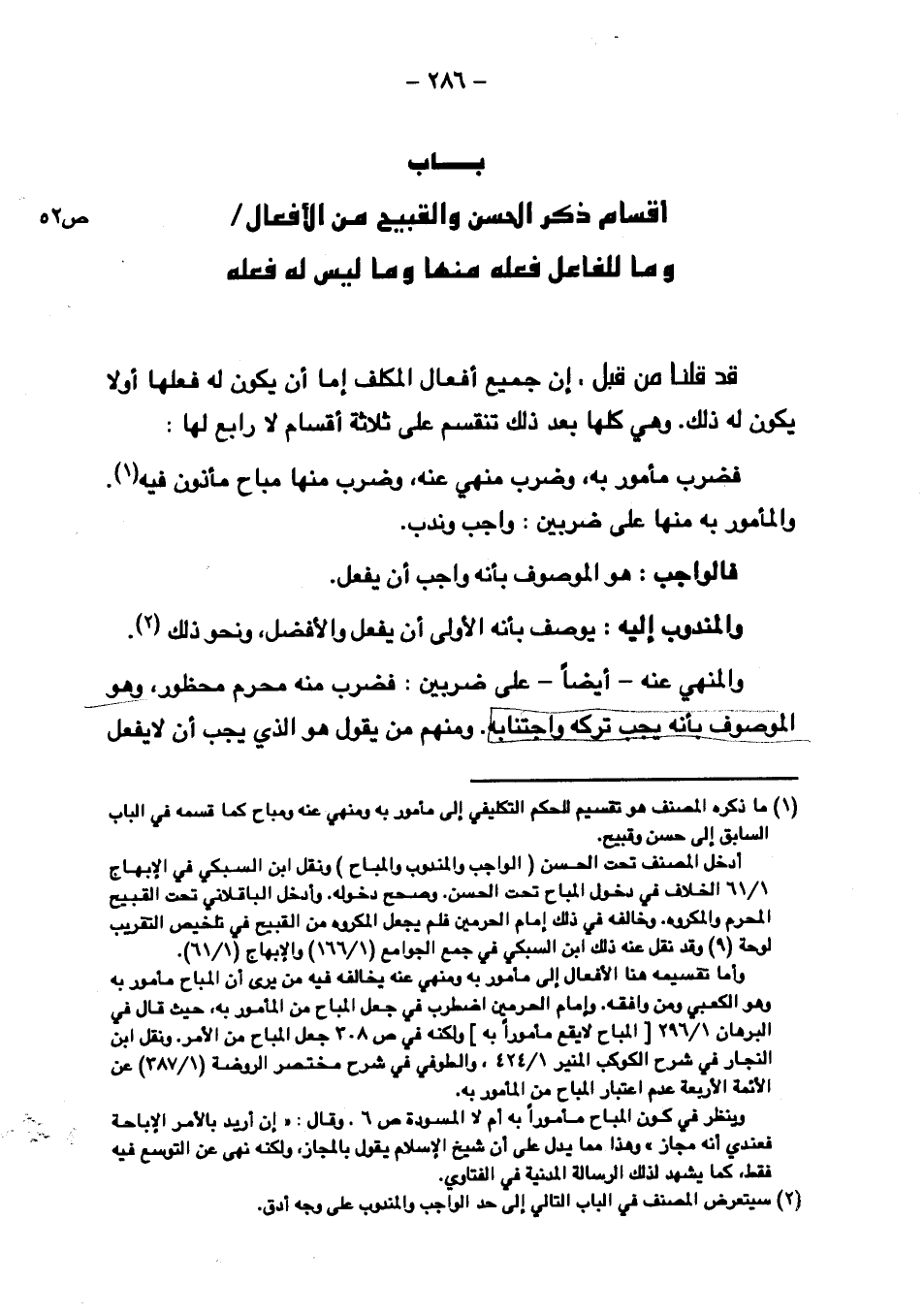 أقسام ذكر الحسن والقبيح من الأفعال/ ص ٥٢
