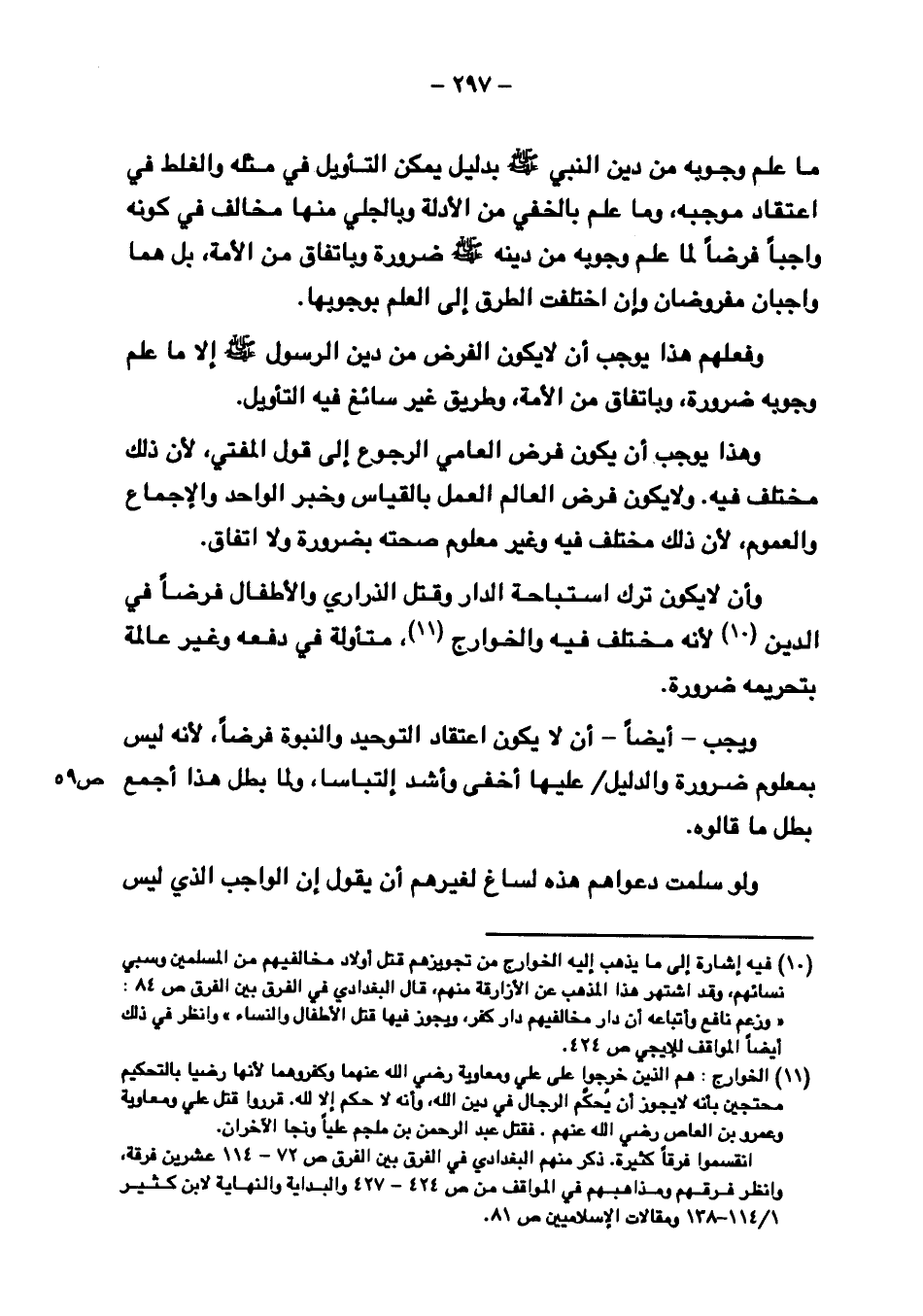 وأن لا يكون ترك استباحة الدار وقتل الذراري والأطفال فرضاً في الدين لأنه مختلف فيه، والخوارج متأولة في دفعه وغير عالمة بتحريمه ضرورة.