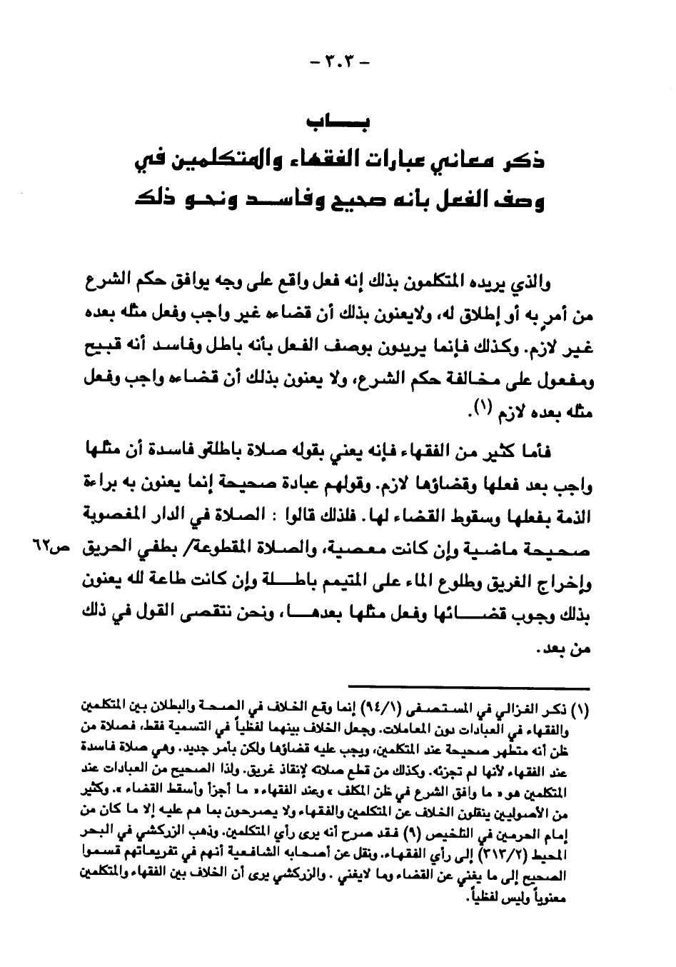 والذي يريده المتكلمون بذلك إنه فعل واقع على وجه يوافق حكم الشرع من أمرٍ به أو إطلاق له، ولا يعنون بذلك أن قضاءه غير واجب وفعل مثله بعده من غير لازم. وكذلك فإنما يريدون بوصف الفعل بأنه باطل وفاسد أنه قبيح ومفعول على مخالفة حكم الشرع، ولا يعنون بذلك أن قضاءه واجب وفعل مثله بعده لازم.