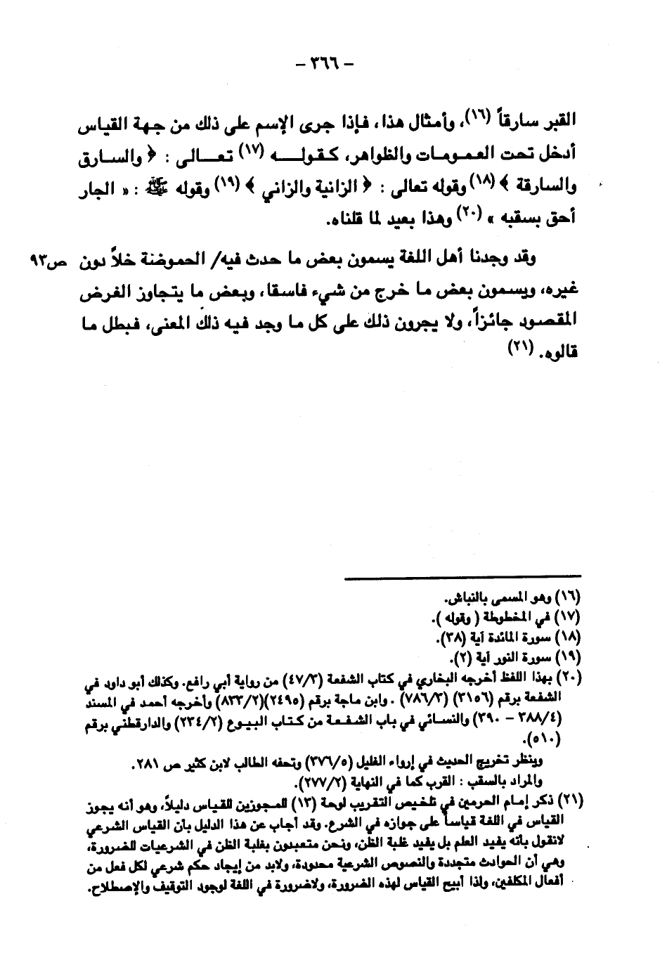 القبر سارقاً، وأمثال هذا، فإذا جرى الاسم على ذلك من جهة القياس أدخل تحت العمومات والظواهر، كقوله تعالى {والسَّارِقُ والسَّارِقَة} وقوله تعالى: {الزَّانِيَةُ والزَّانِي} وقوله صلى الله عليه وسلم: "الجار أحق بسقبه "وهذا بعيد لما قلناه.