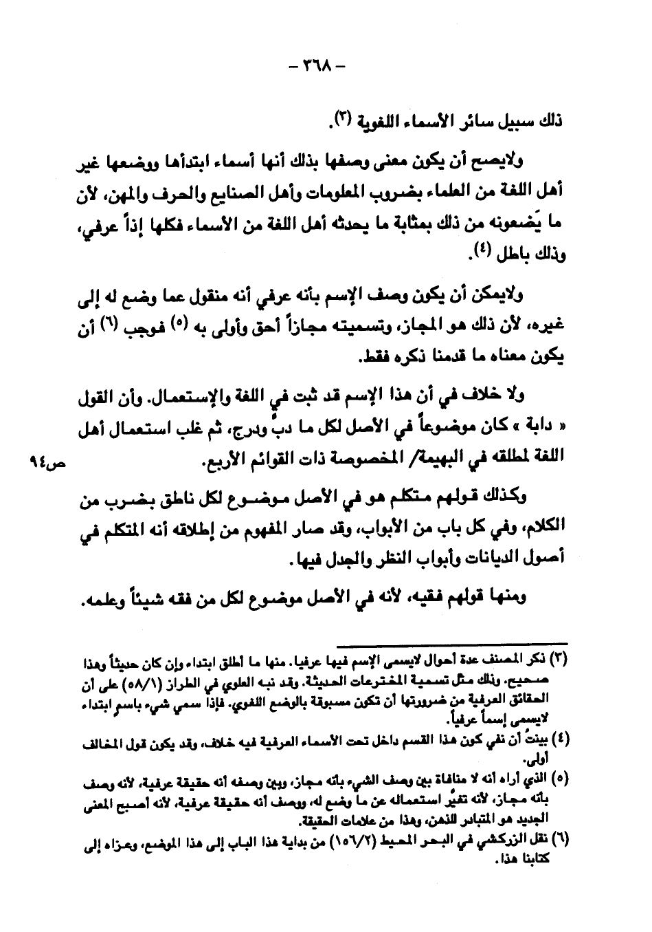 ولا خلاف في أن هذا الاسم قد ثبت في اللغة والاستعمال. وأن القول "دابة "كان موضوعاً في الأصل لكل ما دب ودرج، ثم غلب استعمال أهل اللغة لمطلقه في البهيمة/ ص ٩٤ المخصوصة ذات القوائم الأربع.