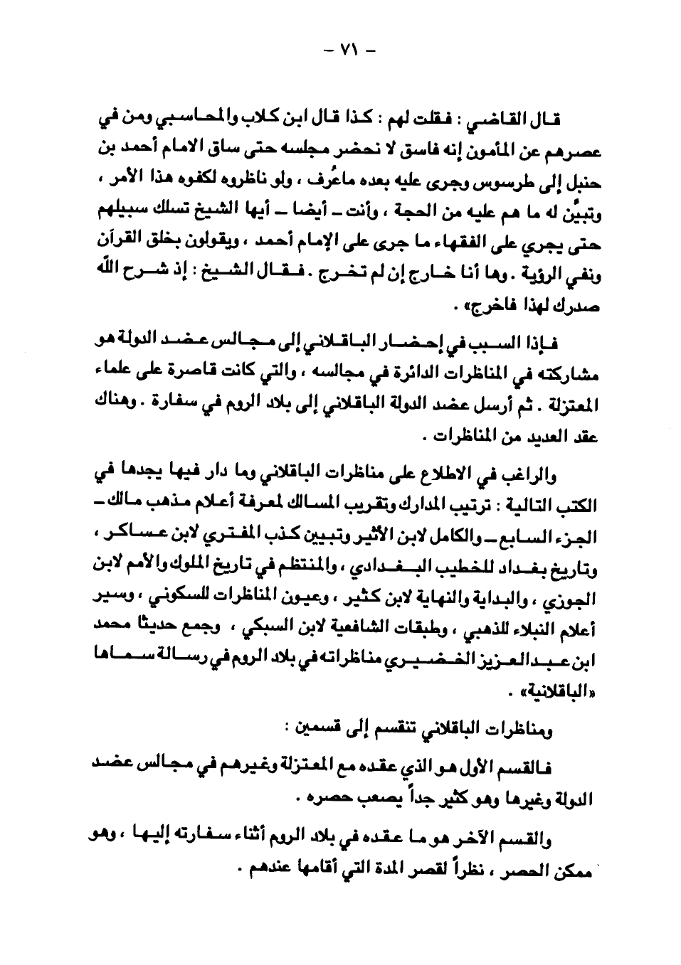 ومناظرات الباقلاني تنقسم إلى قسمين: